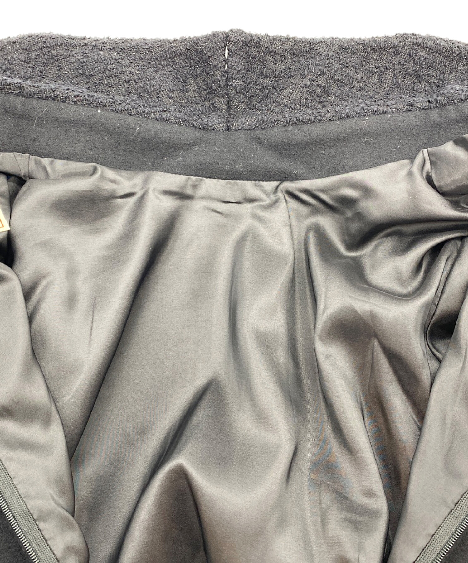| 素材 | 表地 本体部分:毛100% 別布部分:コットン64% ポリエステル26% キュプラ9% ポリウレタン1% 裏地:ポリエステル |