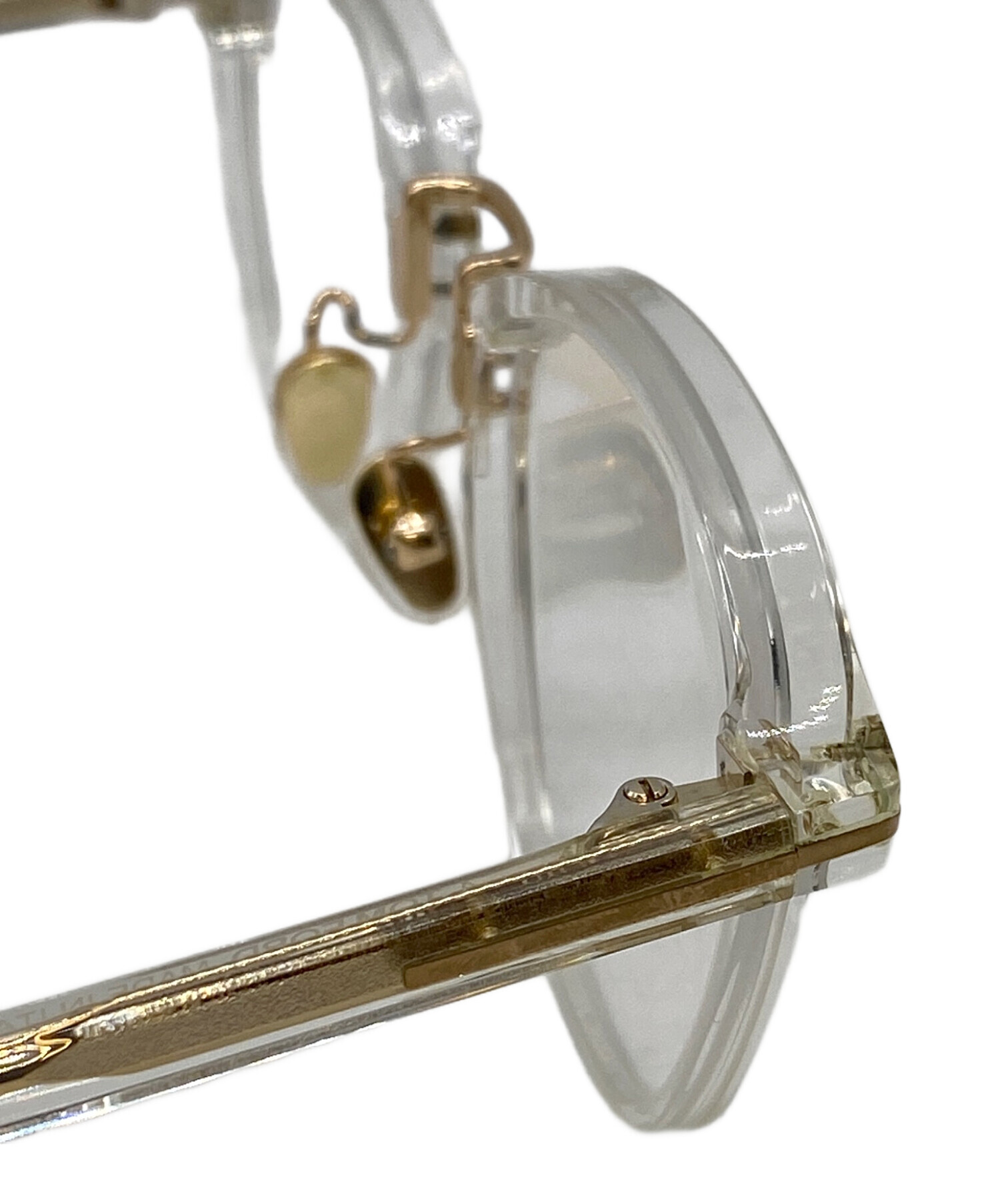 | 状態 | こちらの商品は中古品の為、着用に伴います細かなキズ、汚れがございます。店頭にて展示販売を行っている為、記載に無い細かなキズ、汚れが見受けられる場合がございます。 ※右のテンプルに歪み、左の丁番がかためとなっております。 |