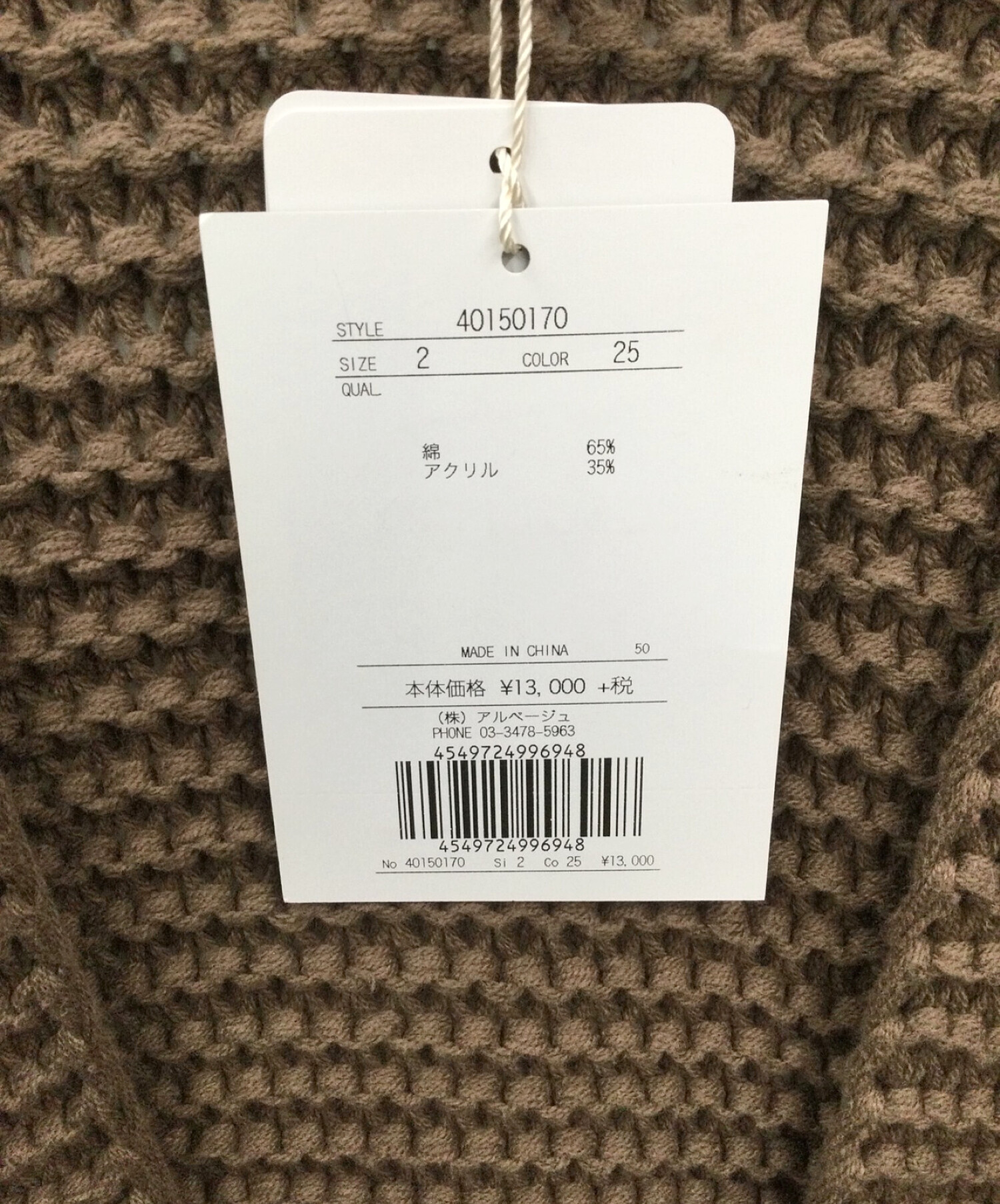 | 素材 | 綿 65% アクリル 35% |