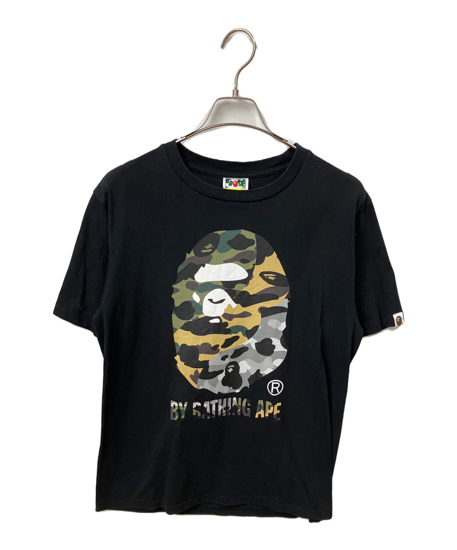 • A BATHING APE(ア ベイシング エイプ)A BATHING APE (ア ベイシング エイプ) 1ST CAMO CRAZY BY BATHING APE TEE ブラック サイズ:Mの古着・服飾アイテム 首元色落ち 軽い毛玉 毛羽立ち