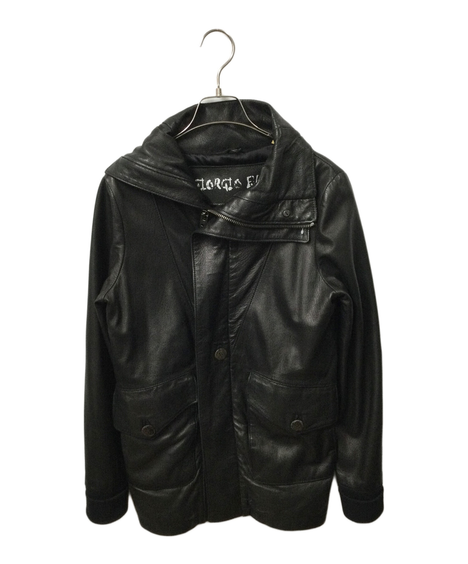 • GIORGIO BRATO(ジョルジョブラッド)GIORGIO BRATO (ジョルジョブラッド) VERA PELLE (ベラペレ) ラムレザージャケット ブラック ブラック サイズ:44の古着・服飾アイテム ボタン 欠け