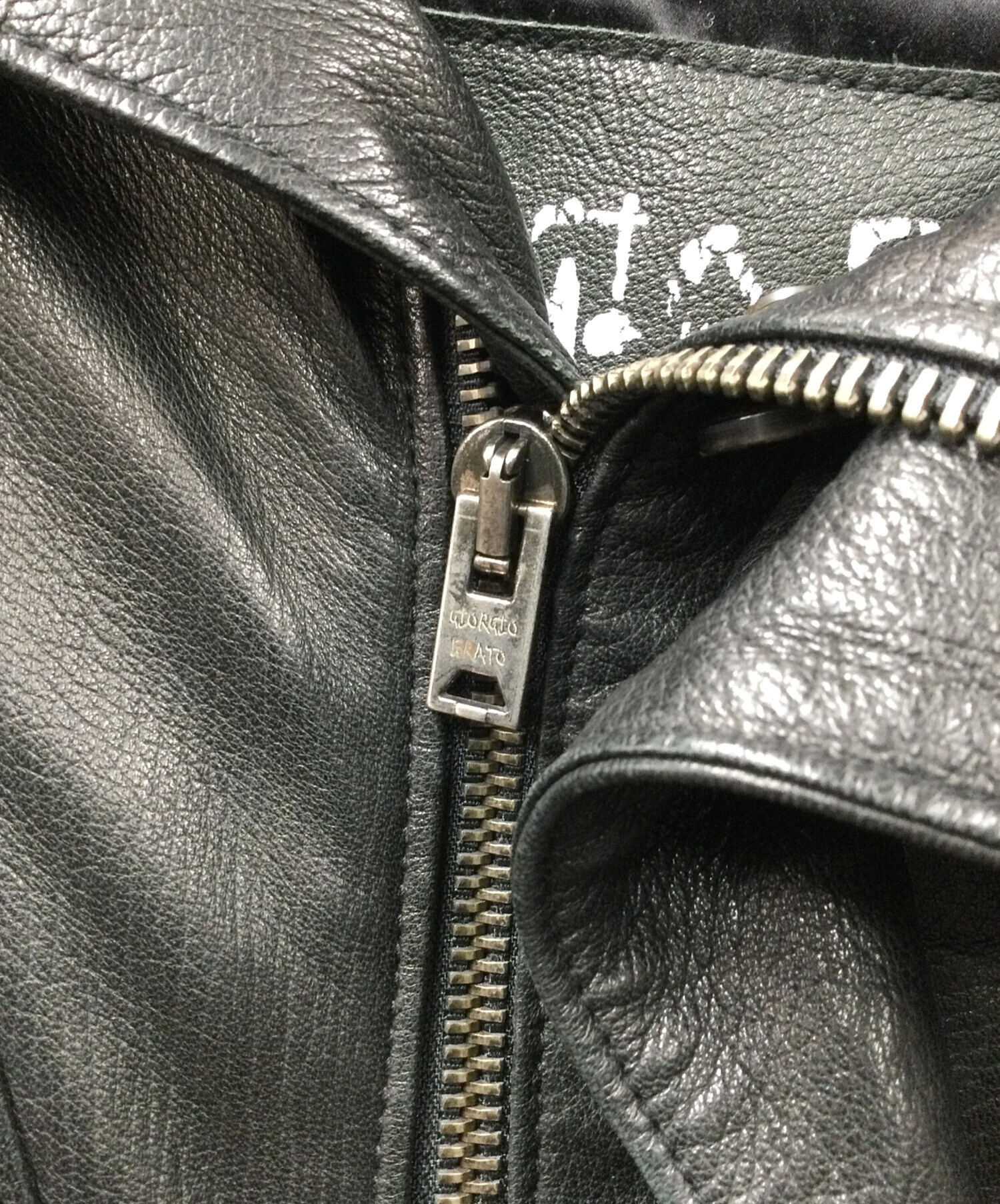 • GIORGIO BRATO(ジョルジョブラッド)GIORGIO BRATO (ジョルジョブラッド) VERA PELLE (ベラペレ) ラムレザージャケット ブラック ブラック サイズ:44の古着・服飾アイテム 袖リブ 軽い生地のホツレ