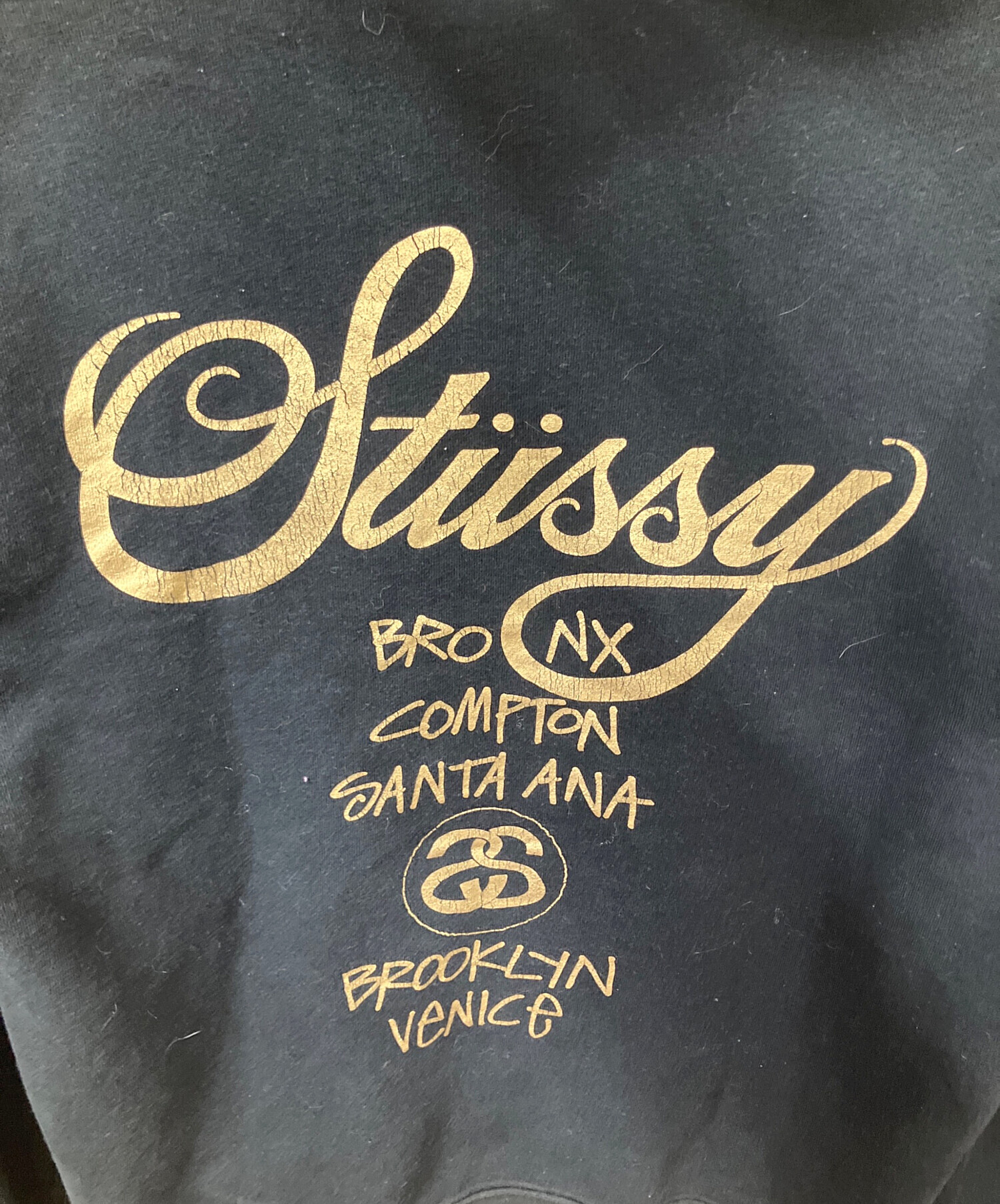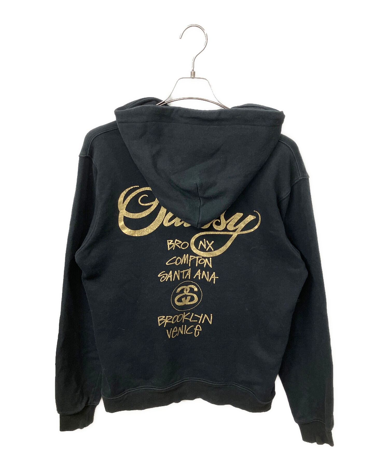 • stussy(ステューシー)stussy (ステューシー) WORLD TOUR HOODIE ブラック サイズ:Mの古着・服飾アイテム 毛羽立ちあり