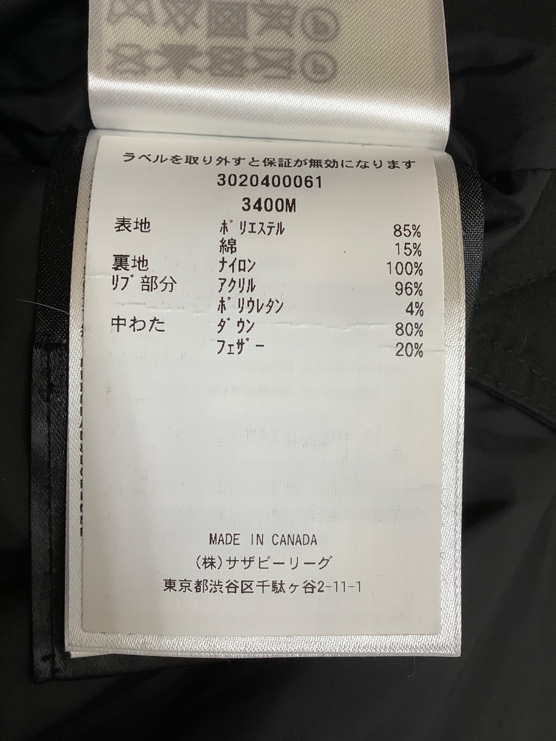 | 素材 | 表地: ポリエステル 85% 綿 15% 裏地: ナイロン 100% リブ部分: アクリル 96% ポリウレタン 4% 中わた: ダウン 80% フェザー 20% |