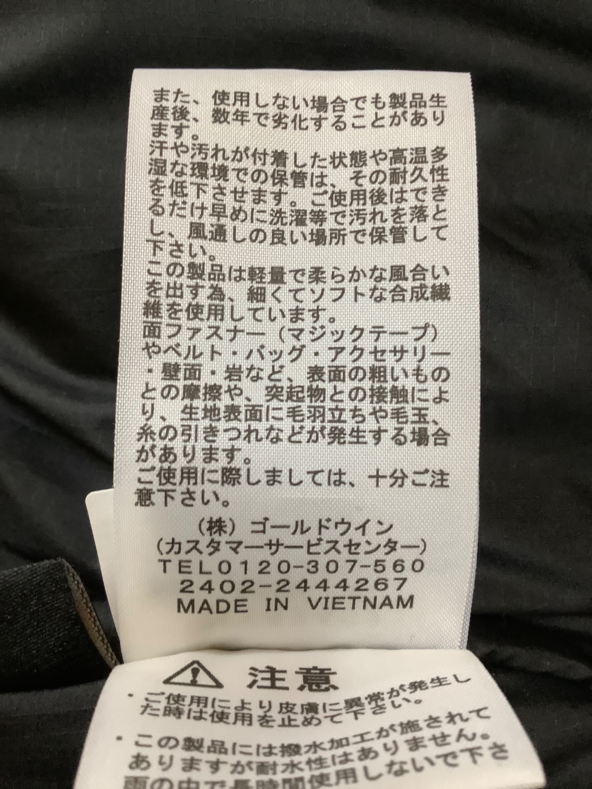 | 素材 | 表地: (複合繊維) ポリエステル 68% ポリエステル 32% 中わた: ポリエステル 100% 裏地: ポリエステル 100% (コーティング樹脂加工) 衿、袖口、裾: アクリル 70% ウール 30% |