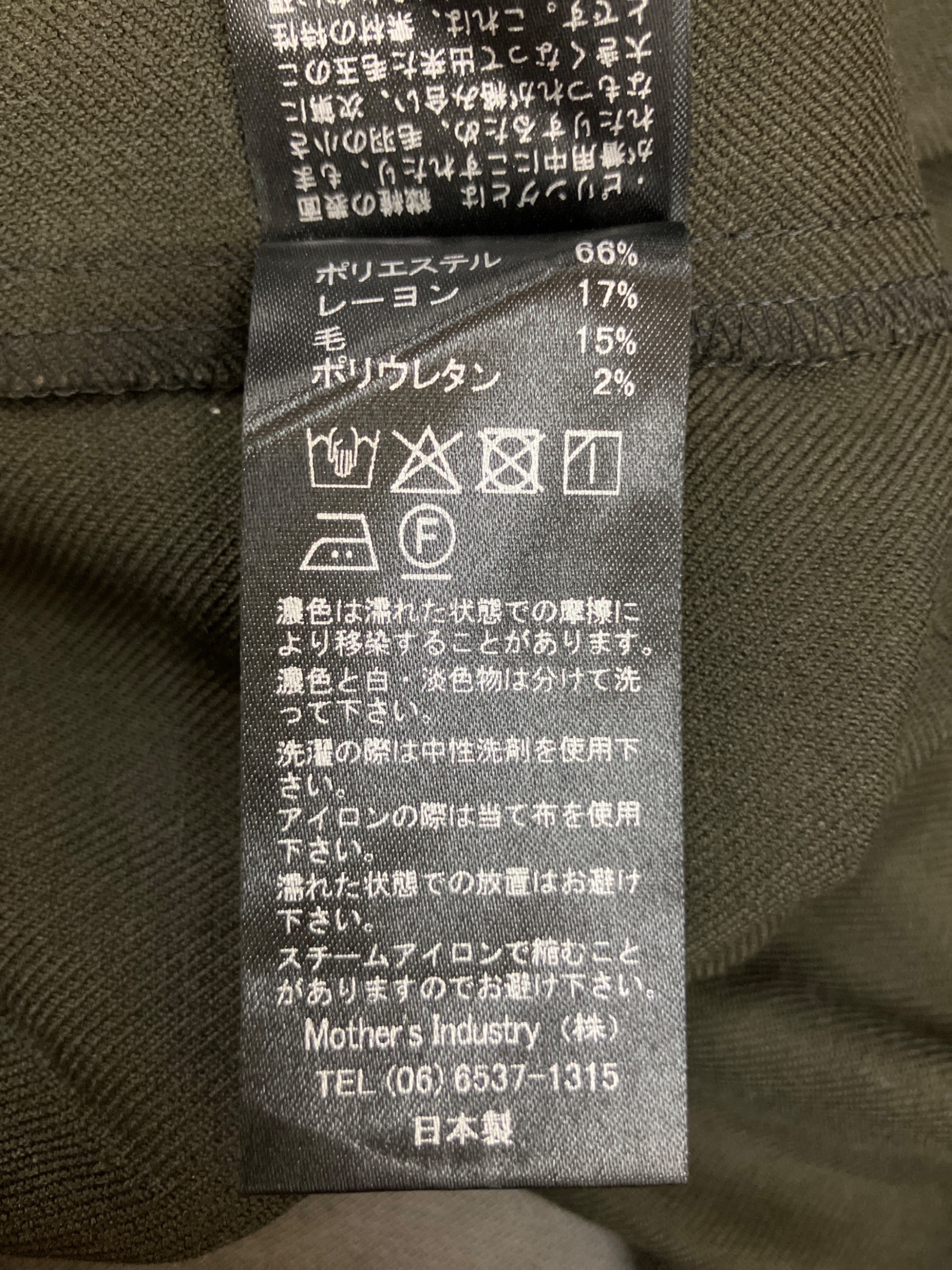 | 素材 | ポリエステル 66% レーヨン 17% 毛 15% ポリウレタン 2% |