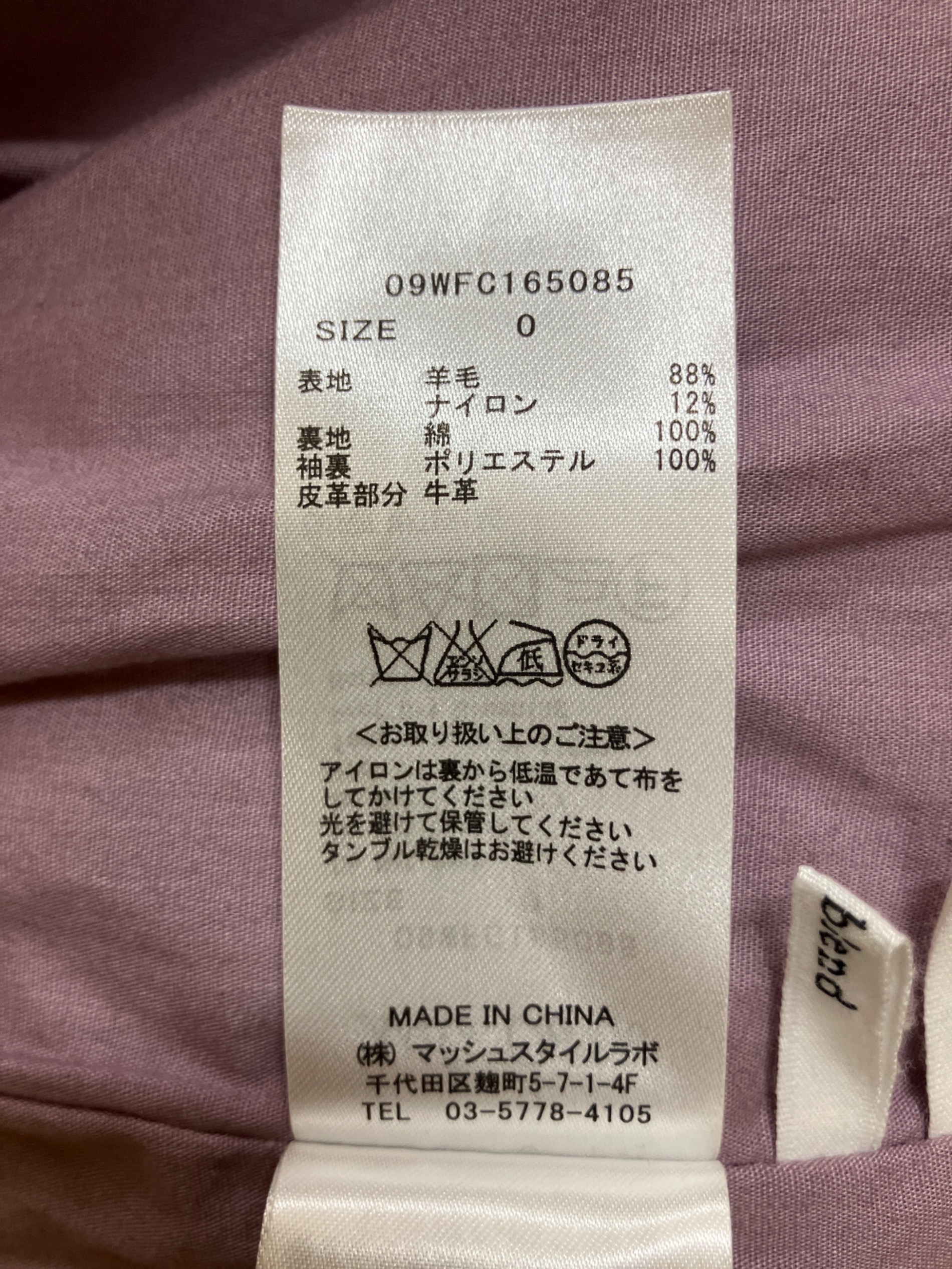 タグ表記サイズ:0( 参考サイズ:M )