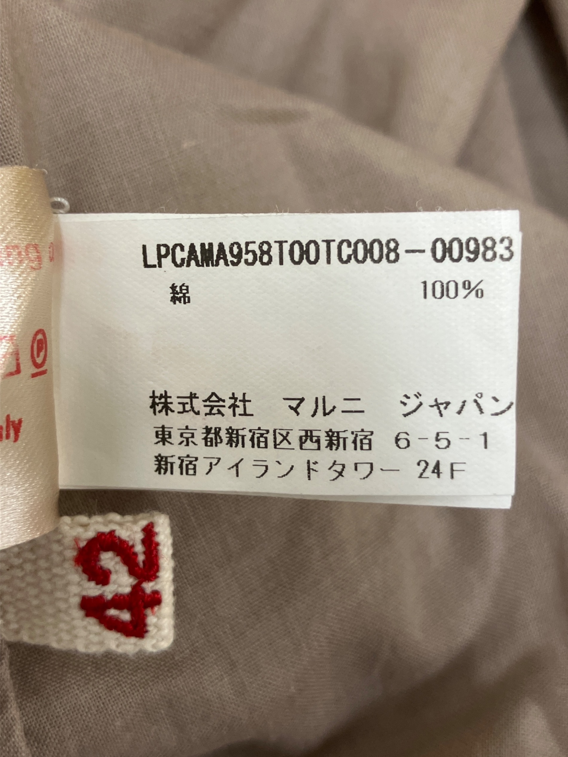 タグ表記サイズ:42( 参考サイズ:M )