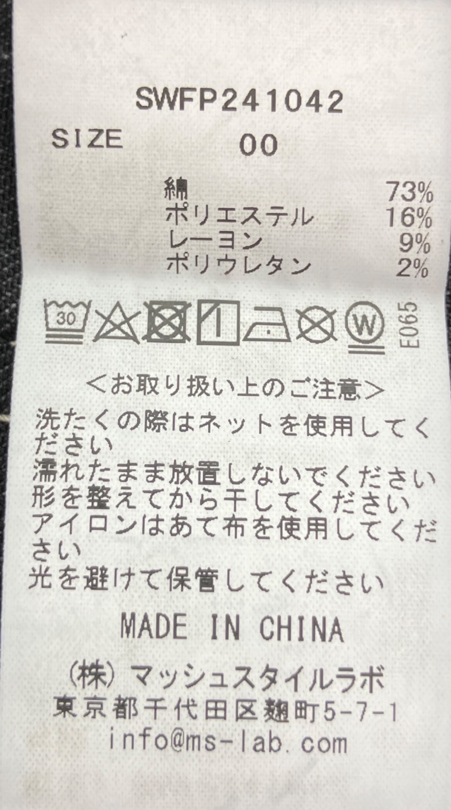 | 素材 | 綿 73% ポリエステル 16% レーヨン 9% ポリウレタン 2% |
