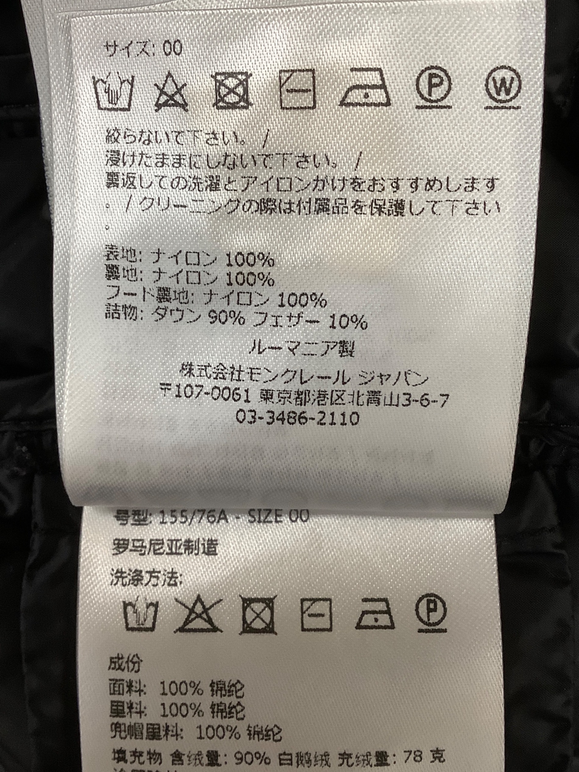 | 素材 | 表地: ナイロン 100% 裏地: ナイロン 100% フード裏地: ナイロン 100% 詰物: ダウン 90% フェザー 10% |