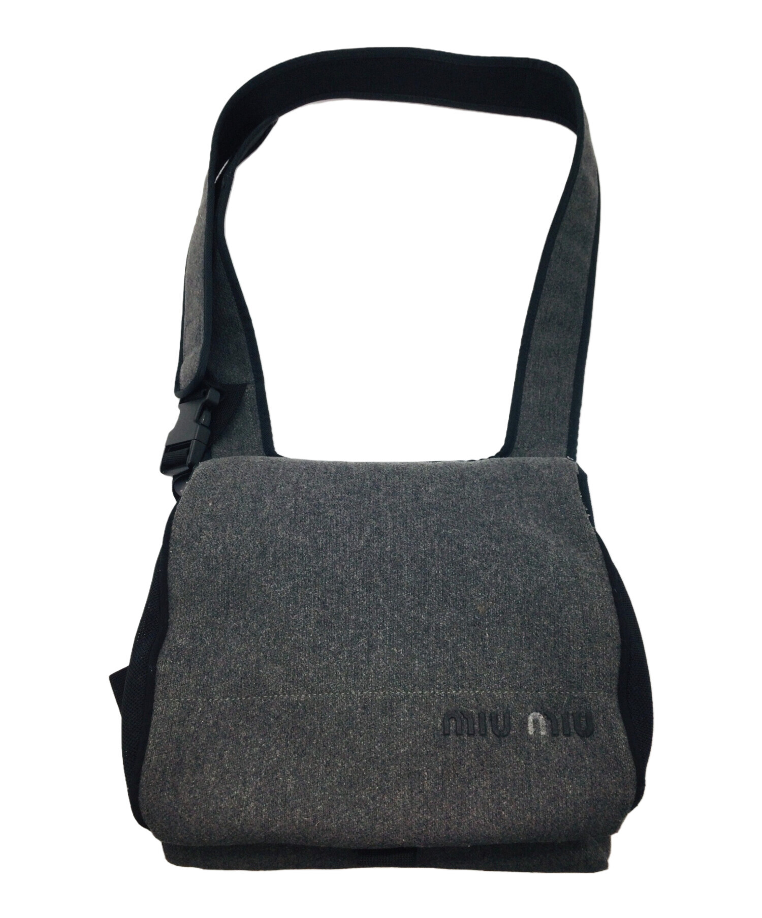 • MIU MIU(ミュウミュウ)MIU MIU (ミュウミュウ) ショルダーバッグ グレー×ブラックの古着・服飾アイテム ヨゴレ有/