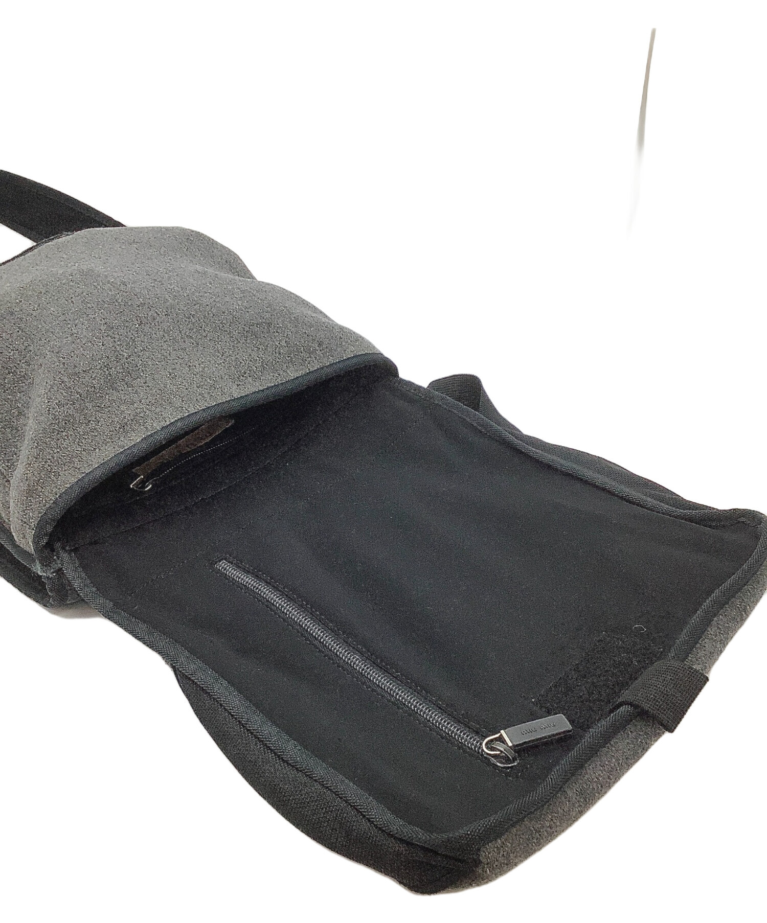 • MIU MIU(ミュウミュウ)MIU MIU (ミュウミュウ) ショルダーバッグ グレー×ブラックの古着・服飾アイテム ケダマ有/