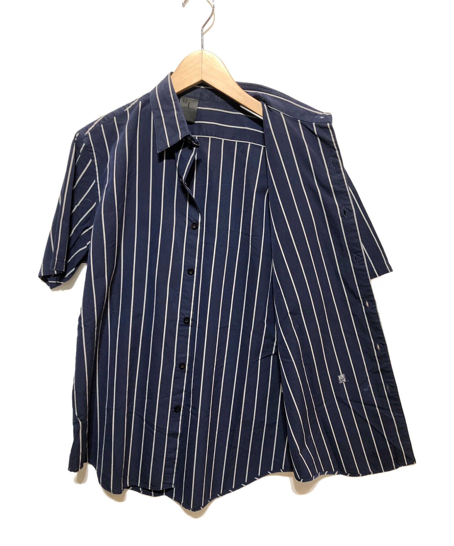• N.HOOLYWOOD(エヌ ハリウッド)N.HOOLYWOOD (エヌ ハリウッド) 半袖シャツ ネイビー×グレー サイズ:38の古着・服飾アイテム 汚れ有