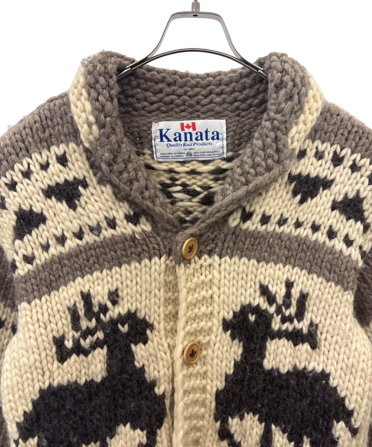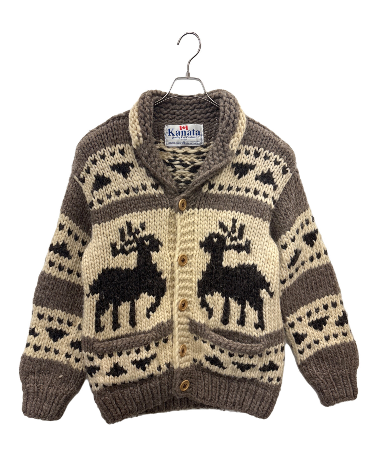 • KANATA(カナタ)KANATA (カナタ) KANATA カウチンニットカーディガン ベージュ サイズ:不明の古着・服飾アイテム ボタン糸ほつれあり