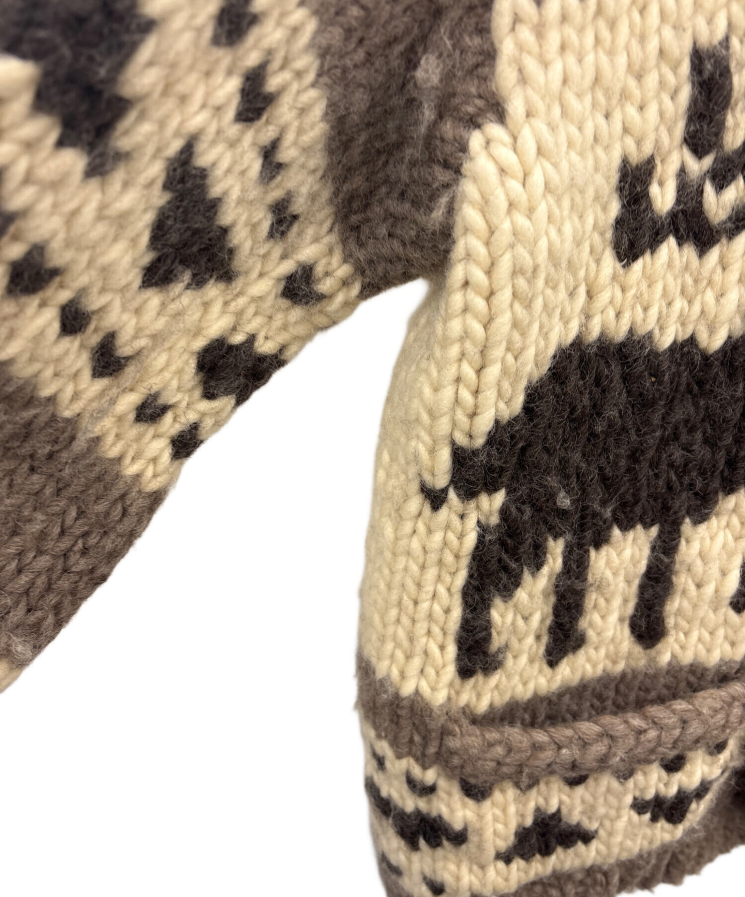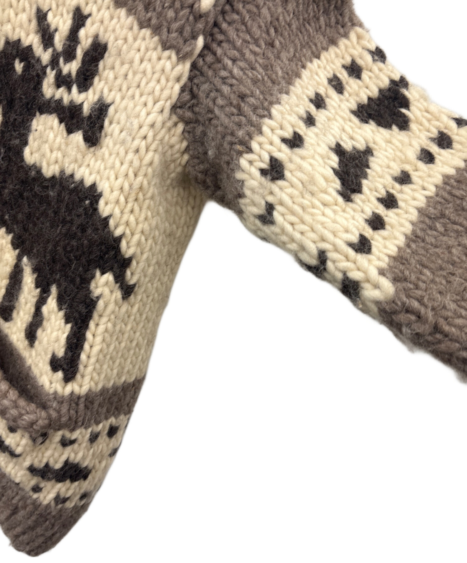 • KANATA(カナタ)KANATA (カナタ) KANATA カウチンニットカーディガン ベージュ サイズ:不明の古着・服飾アイテム 全体的に毛羽立ち、毛玉あり