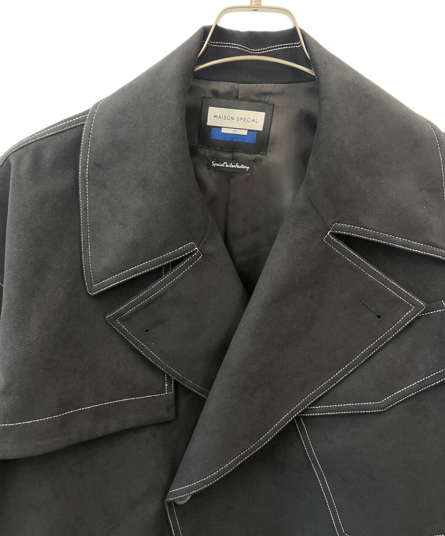 • MAISON SPECIAL(メゾンスペシャル)MAISON SPECIAL (メゾンスペシャル) 2WAYステッチショートブルゾン ブラック サイズ:01の古着・服飾アイテム 襟元/ヨゴレ・毛羽立ちあり