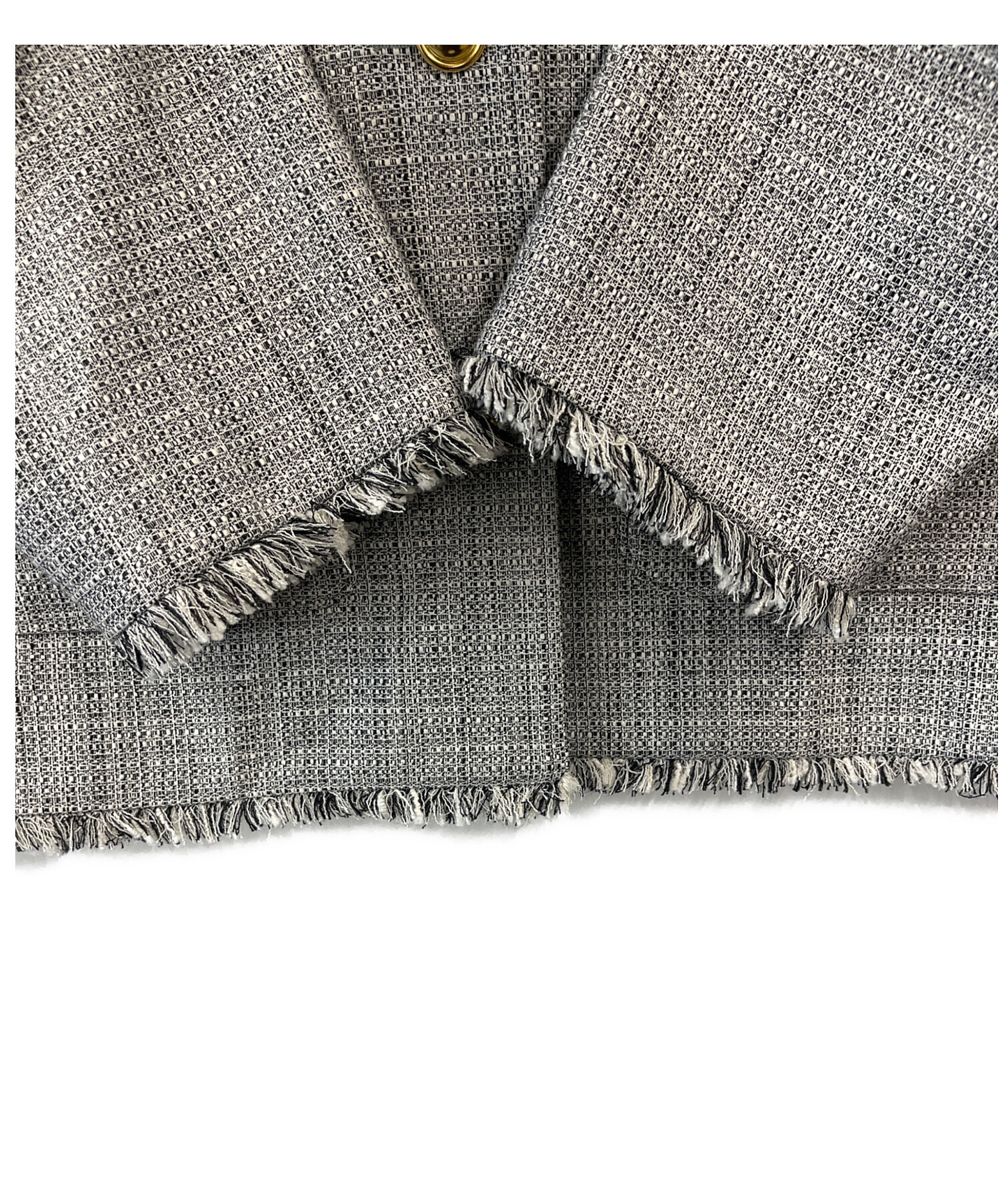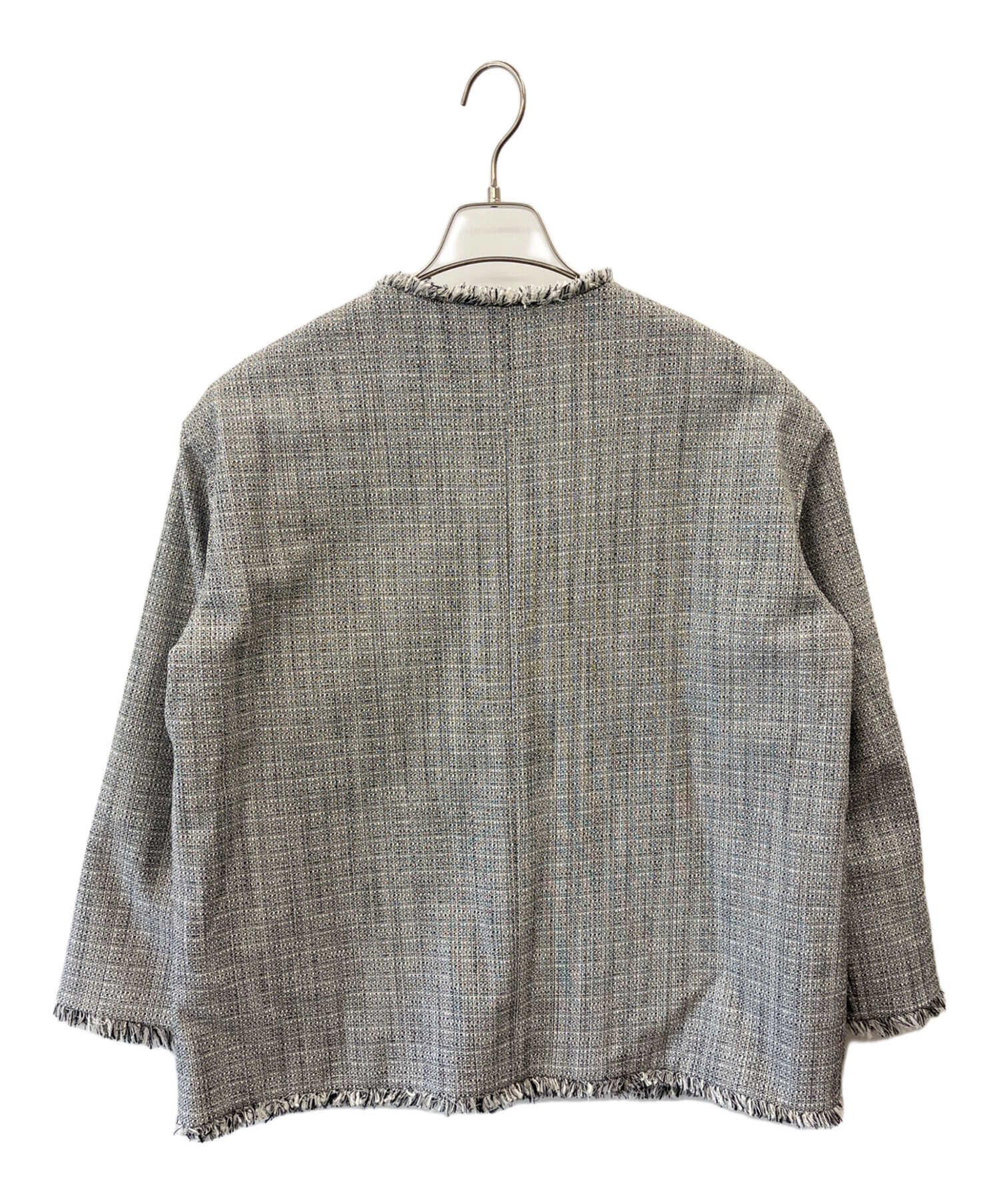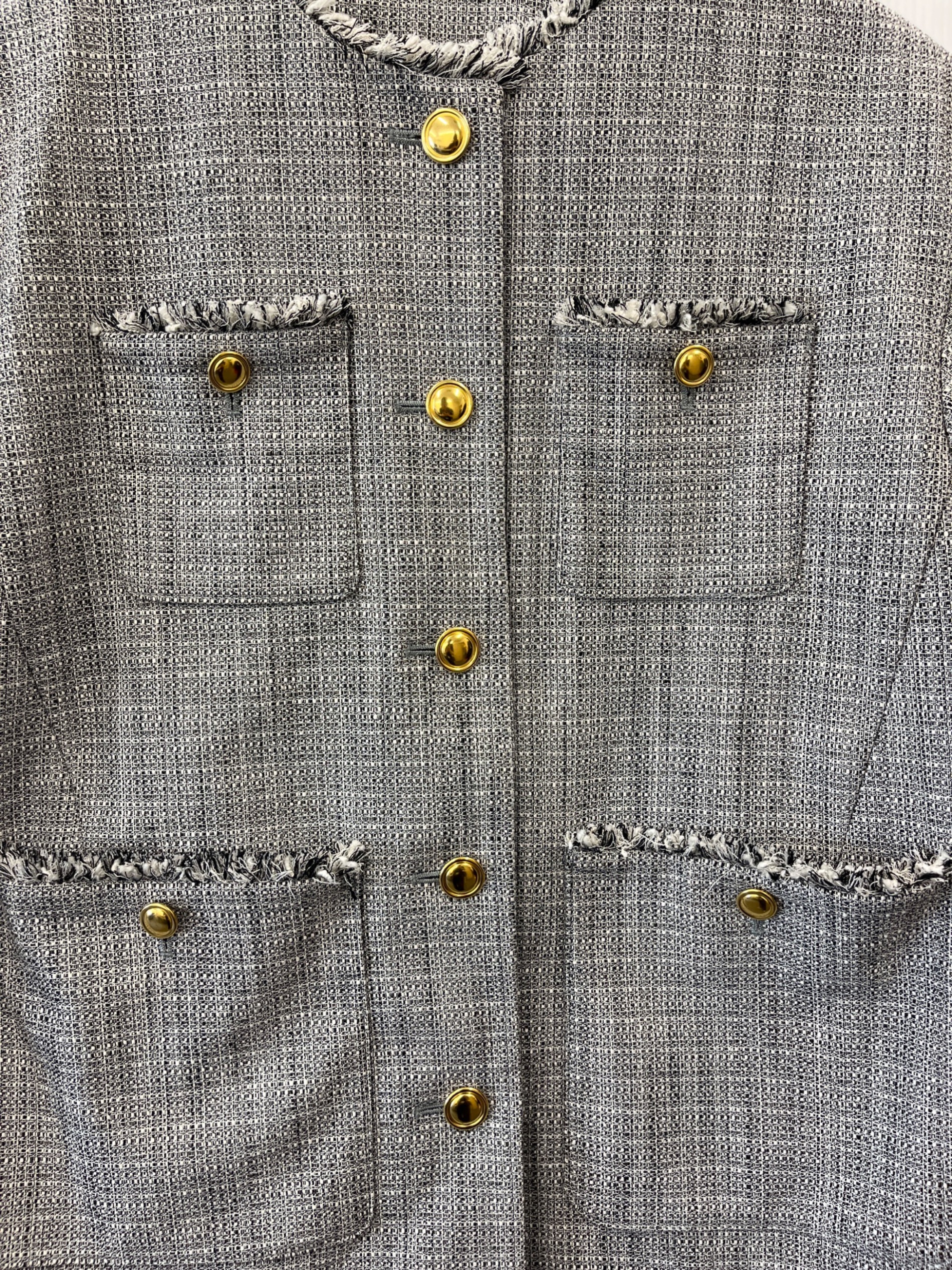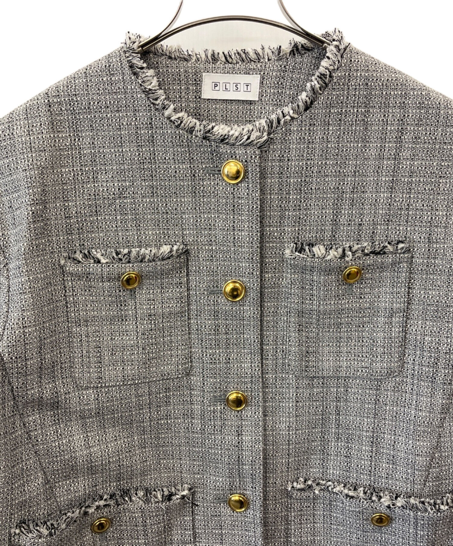 • PLST(プラステ)PLST (プラステ) PLST ツイードメタルボタンジャケット グレー サイズ:Mの古着・服飾アイテム フリンジ部分/若干の毛羽立ちあり