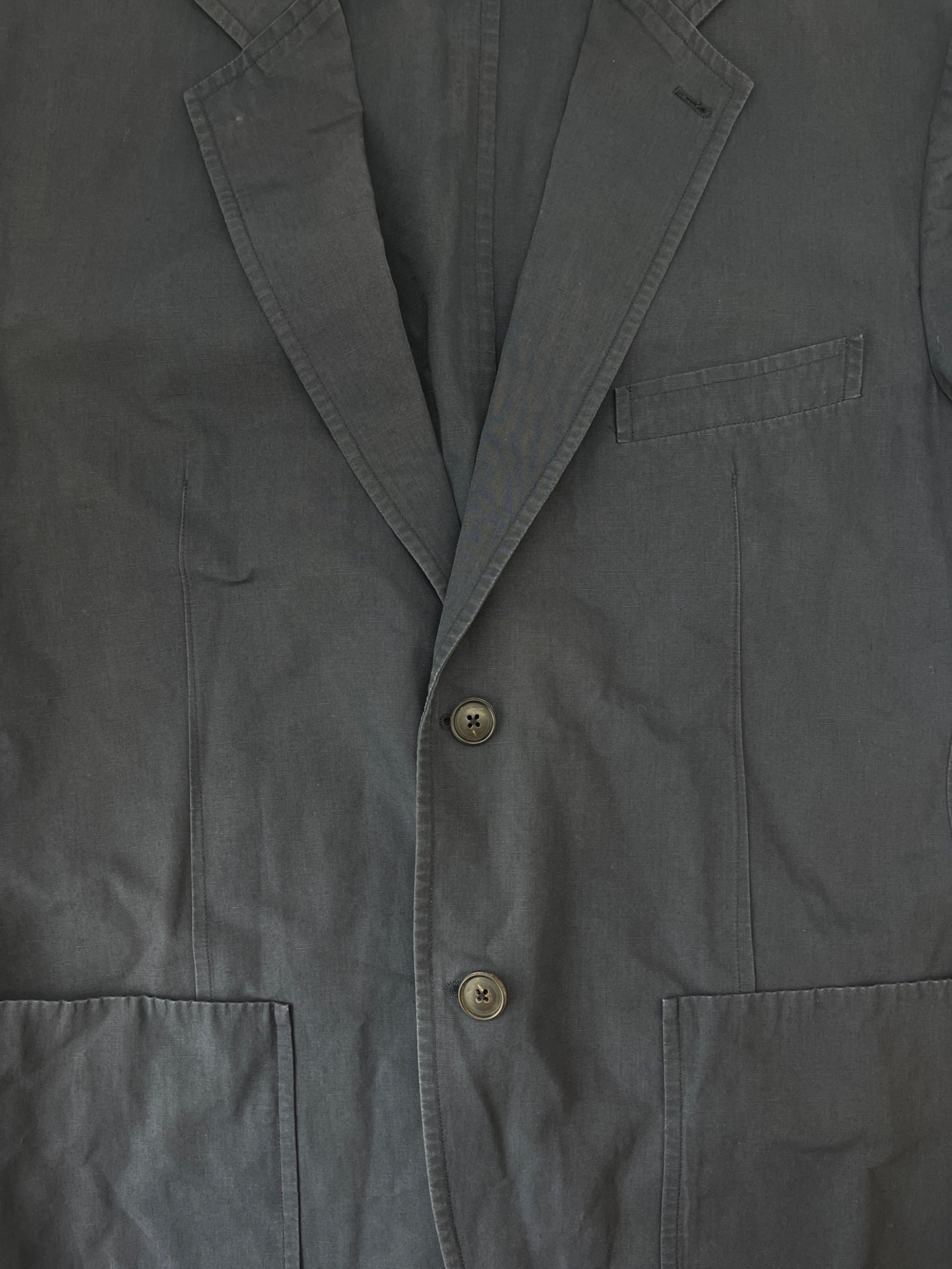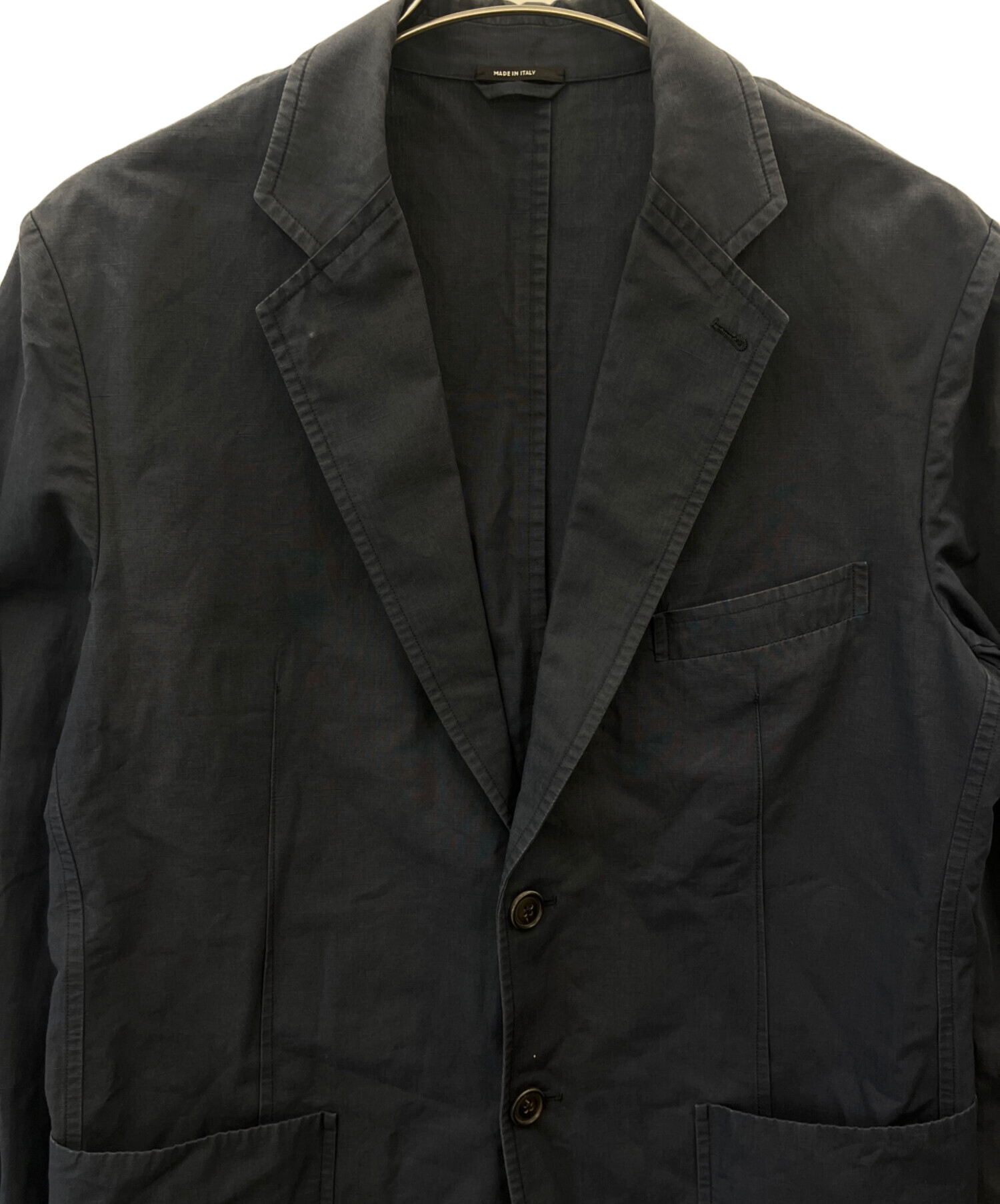 • HERMES(エルメス)HERMES (エルメス) HERMES テーラードジャケット リネン混 ネイビー サイズ:50の古着・服飾アイテム 襟元/色褪せ・ヨゴレあり