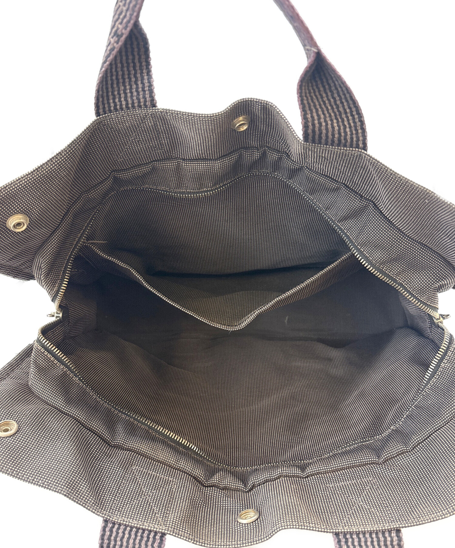 | 状態 | ※シミ、ヨゴレ多数あり ※金具サビあり ※ハンドル色落ちあり ※四角角擦れあり ※毛羽立ちあり ※ファスナー開閉難あり こちらの商品は中古品の為、使用に伴いますキズ、汚れが各所に見受けられます。店頭にて展示販売を行っている為、記載に無い細かなキズ、汚れが見受けられる場合がございます。 |