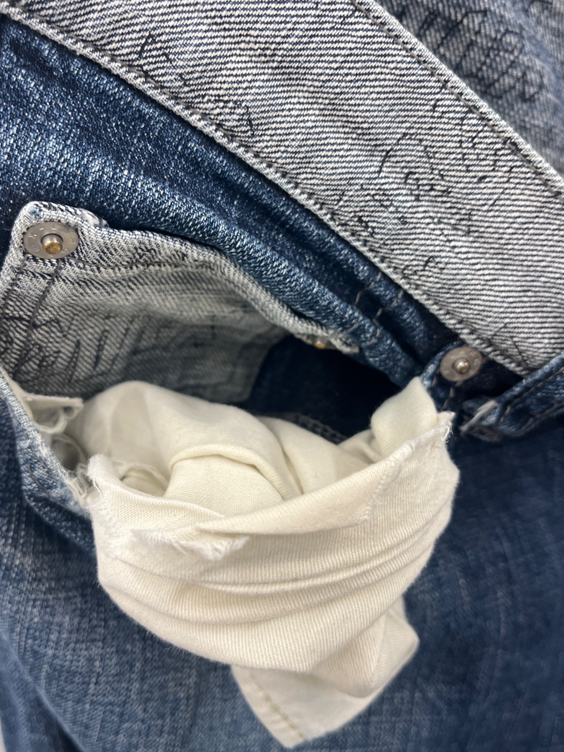 | 状態 | ※ダメージ多数あり ※ポケット/破れあり ※股部分/破れあり ※背面裾部分/擦れ・破れあり こちらの商品は中古品の為、使用に伴いますキズ、汚れが各所に見受けられます。店頭にて展示販売を行っている為、記載に無い細かなキズ、汚れが見受けられる場合がございます。 |