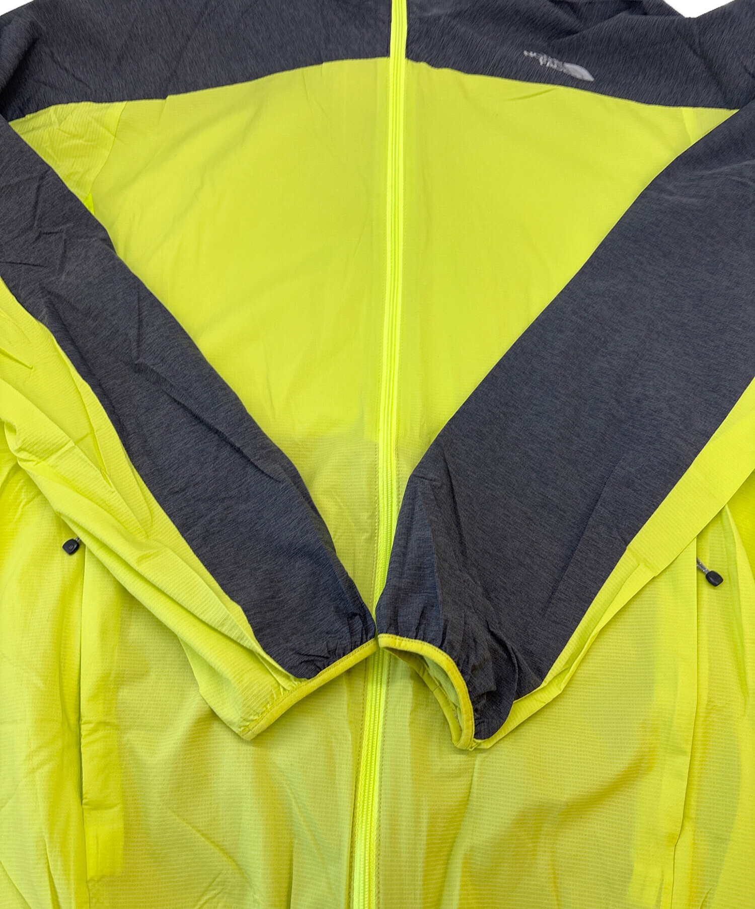 | 素材 | フード、衿、肩ヨーク: ナイロン 83% ポリエステル 17% 前身、後身、袖下、脇下 ナイロン 100% コーティングなど樹脂加工 メッシュ部分: ポリエステル 100% |
