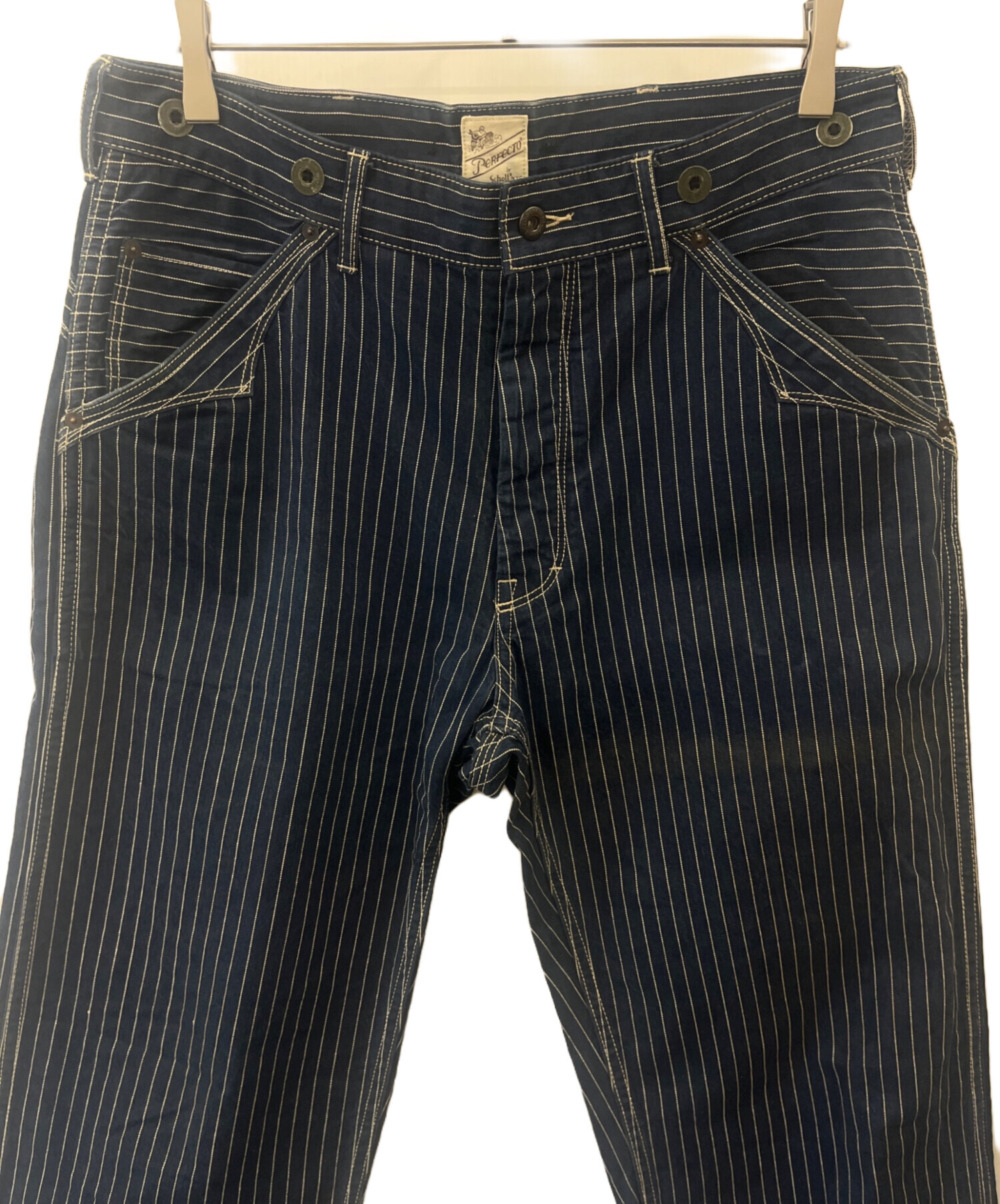 • PERFECTO by Schott(パーフェクト バイ ショット)perfecto by Schott (パーフェクト バイ ショット) perfecto by Schott ヒッコリーパンツ インディゴ サイズ:32の古着・服飾アイテム ボタン/ヨゴレ・塗装剥がれあり