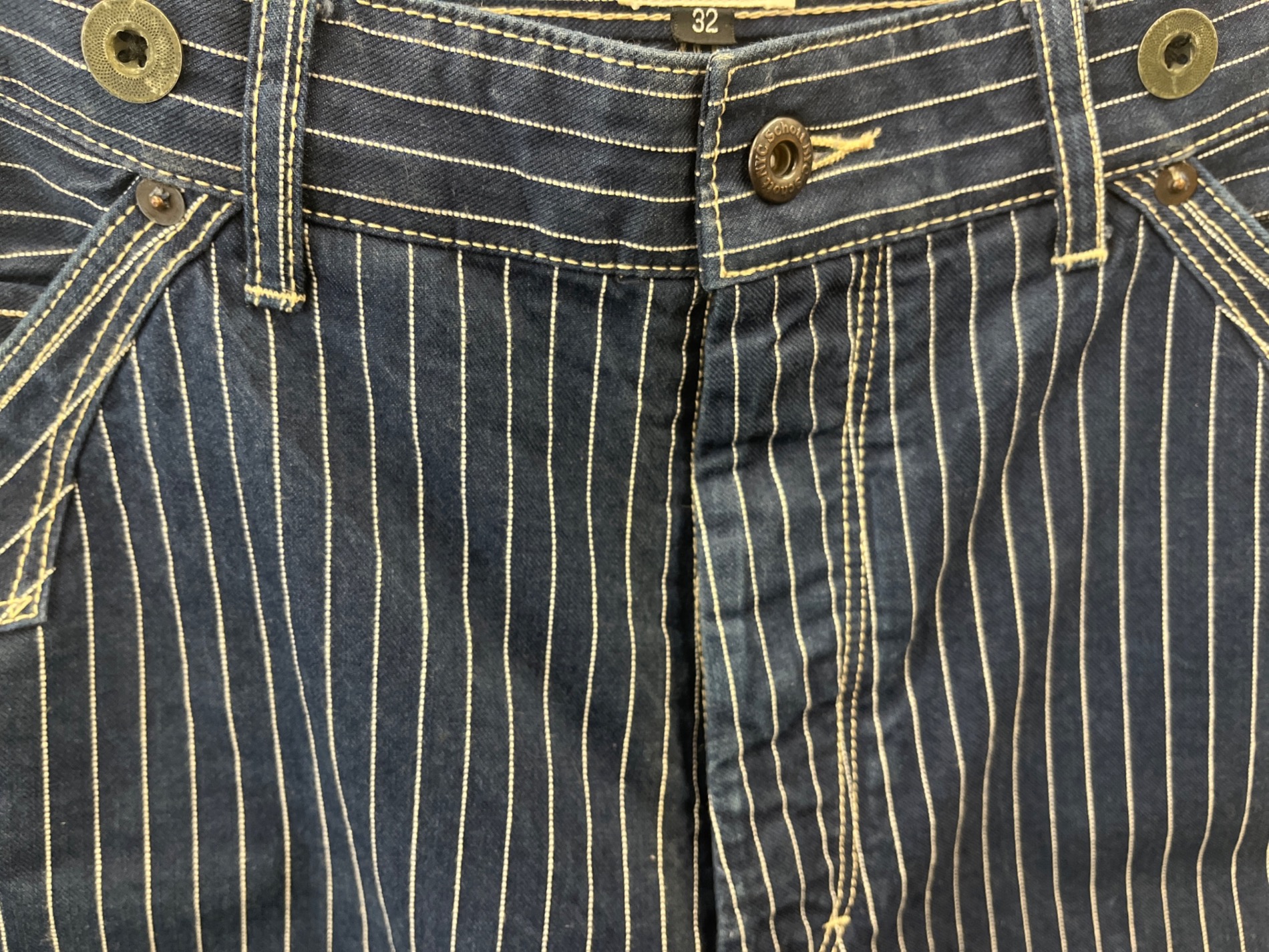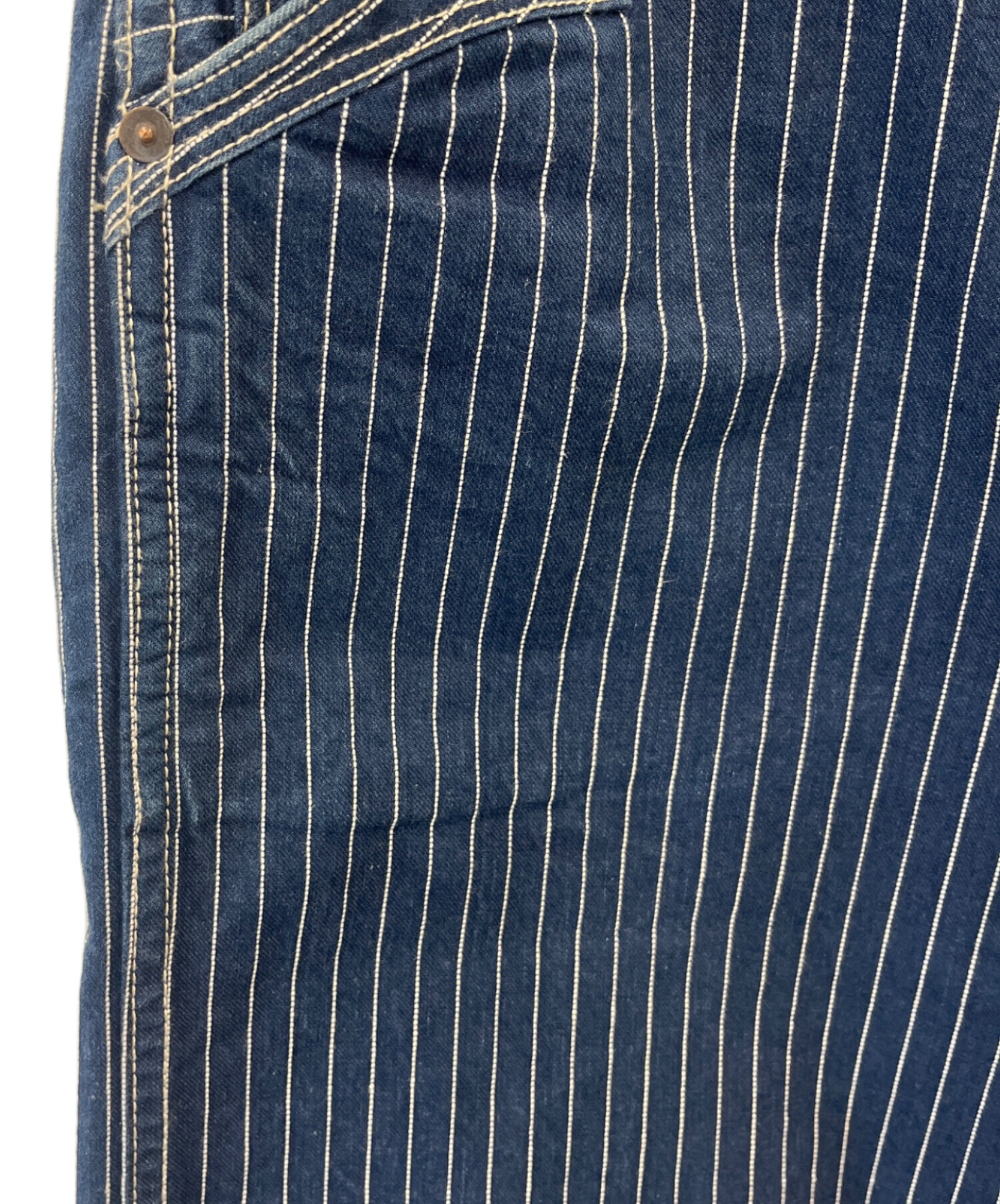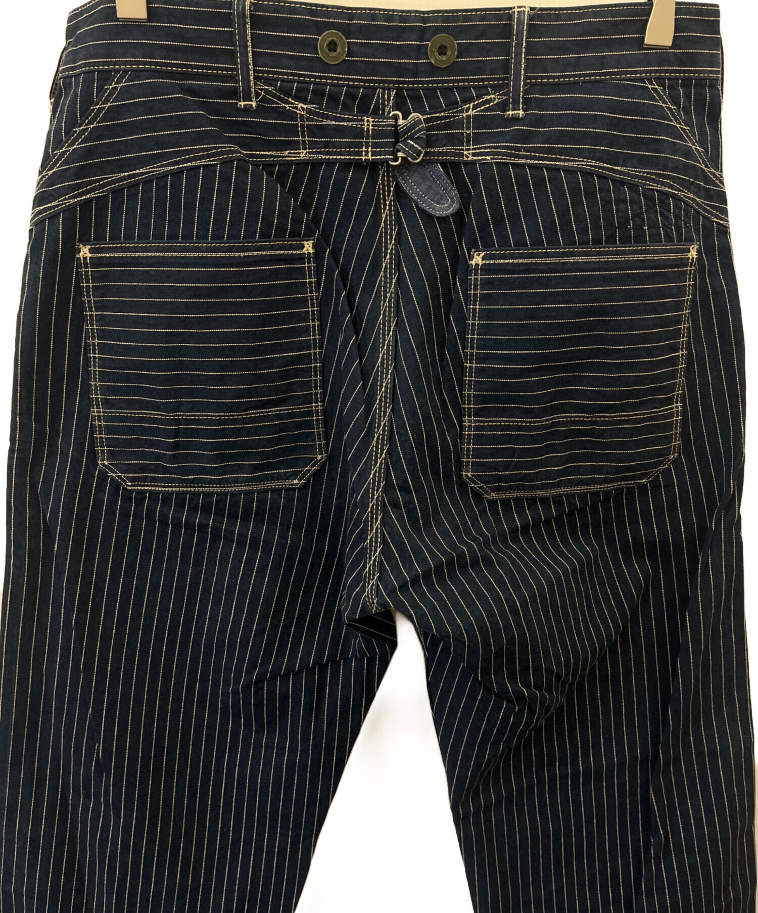 • PERFECTO by Schott(パーフェクト バイ ショット)perfecto by Schott (パーフェクト バイ ショット) perfecto by Schott ヒッコリーパンツ インディゴ サイズ:32の古着・服飾アイテム ボタン/ヨゴレ・塗装剥がれ、アタリあり