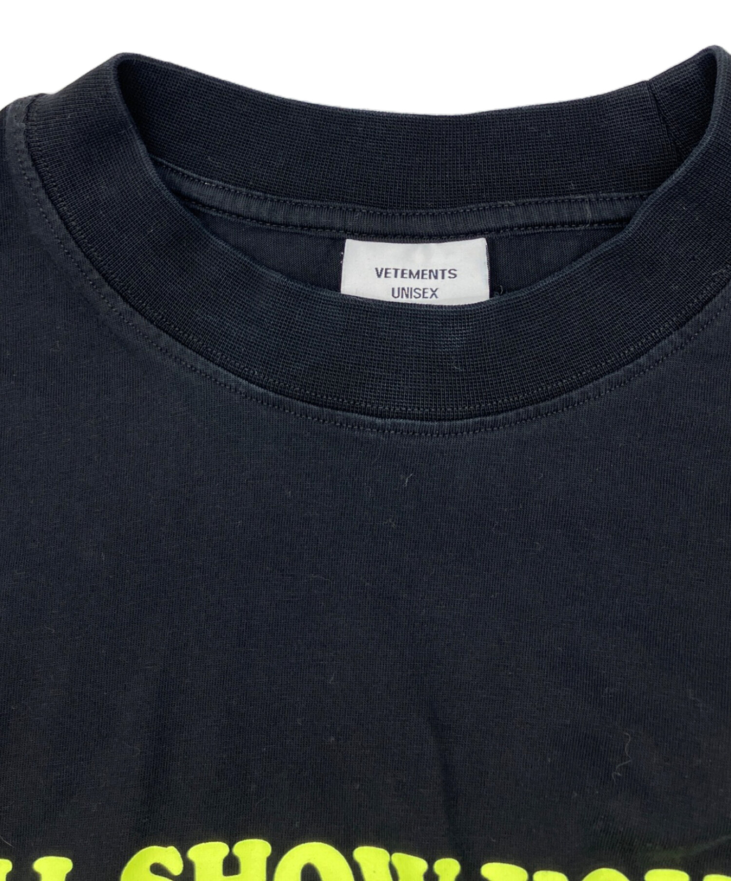 • VETEMEMES(ヴェトミームス)VETEMEMES (ヴェトミームス) Tシャツ ブラック サイズ:Sの古着・服飾アイテム 首元ヨレ・スレ有