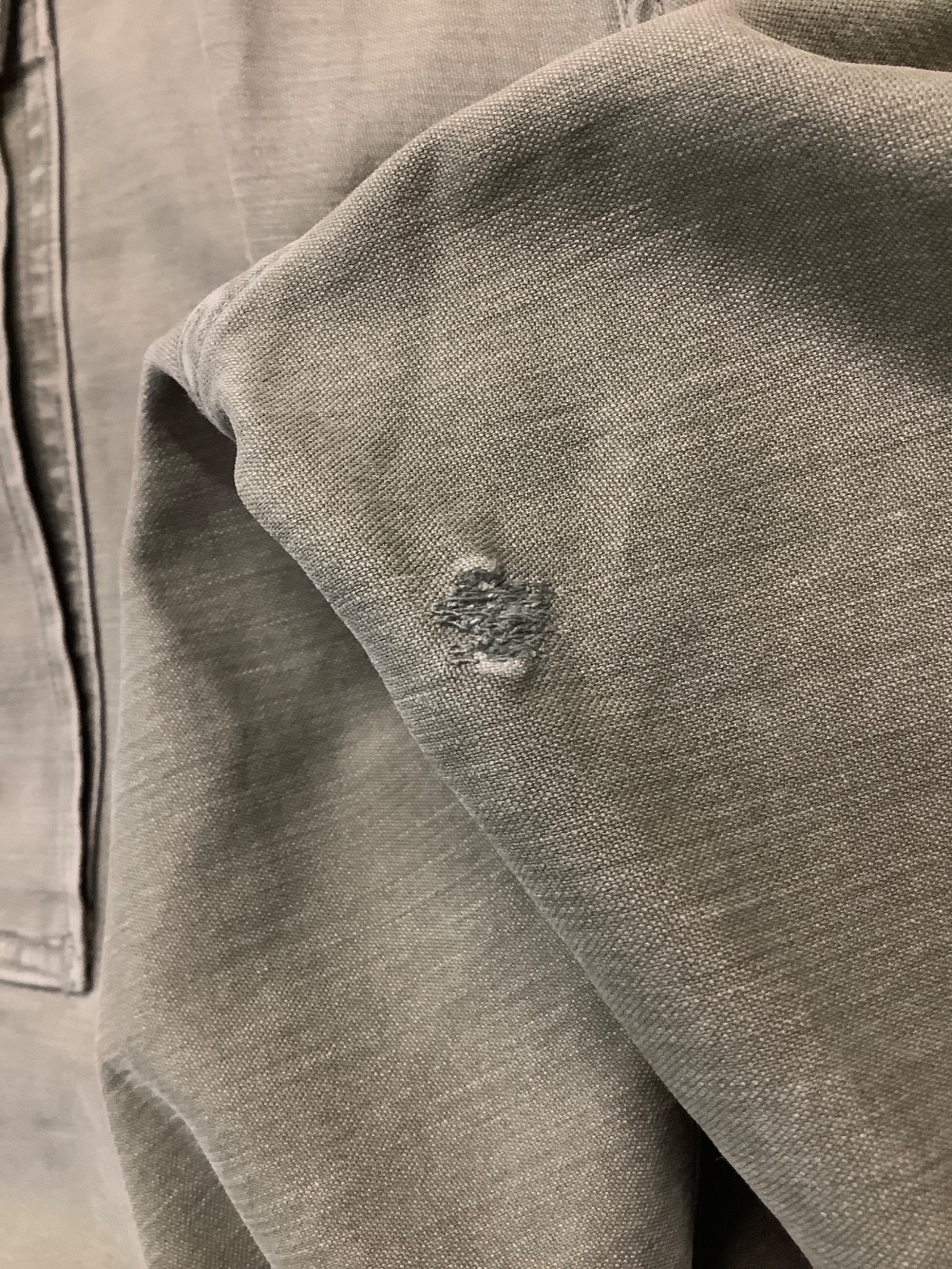 目立つシミや汚れ、におい等がある場合は商品画像や説明文にて極力表記させていただいておりますが、中古品という商品の特性上、全ての瑕疵や不備、洋服直し箇所を撮影・記載をすることは難しくなっております。また、ほとんどのアイテムは店頭と併売しておりますため、出品掲載時からコンディションが変動している場合もございます。あらかじめご了承くださいませ。