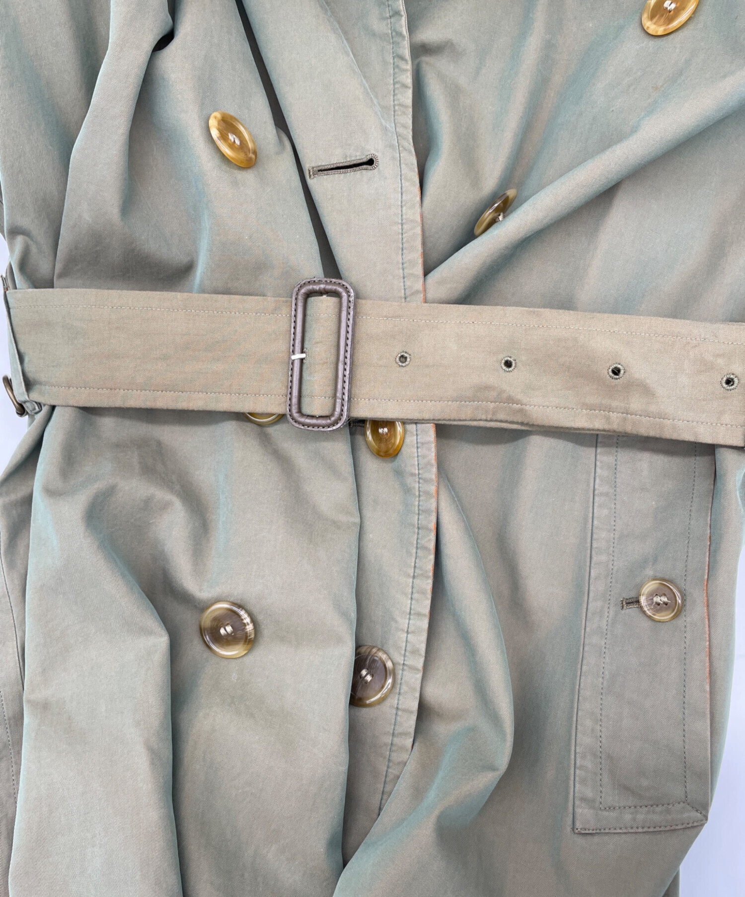 目立つシミや汚れ、におい等がある場合は商品画像や説明文にて極力表記させていただいておりますが、中古品という商品の特性上、全ての瑕疵や不備、洋服直し箇所を撮影・記載をすることは難しくなっております。また、ほとんどのアイテムは店頭と併売しておりますため、出品掲載時からコンディションが変動している場合もございます。あらかじめご了承くださいませ。