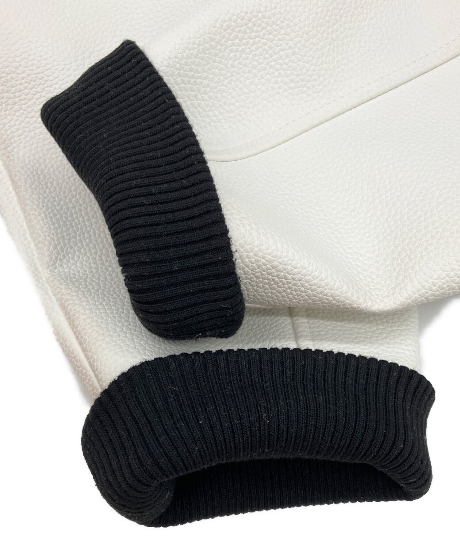 | 素材 | 表地 ポリエステル93%レーヨン5%ポリウレタン2% 裏地 ポリエステル100% 袖部分 合成皮革 リブ部分 ポリエステル95%ポリウレタン5% 刺繍糸 ポリエステル100% サガラ刺繍 アクリル100% |