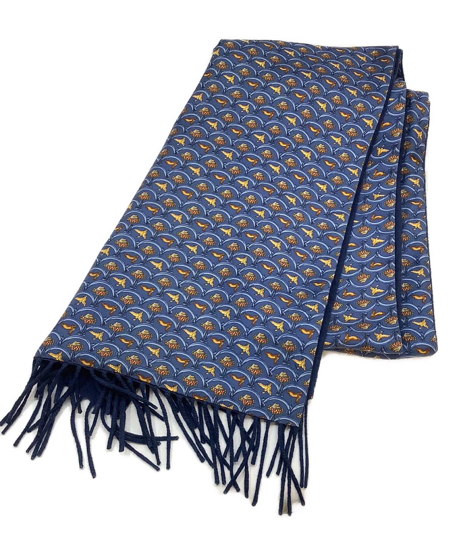 • Salvatore Ferragamo(サルヴァトーレ フェラガモ)Salvatore Ferragamo (サルヴァトーレ フェラガモ) マフラー ブルーの古着・服飾アイテム 変色、ホツレ有