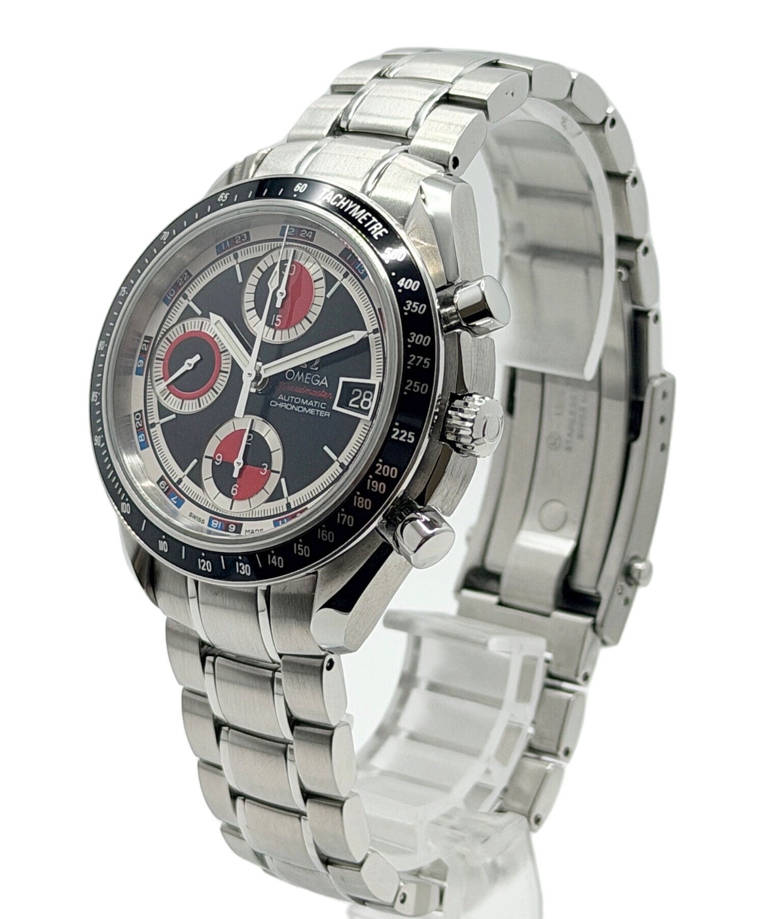 | スタッフコメント | クラシックなスピードマスターのDNAに、日常使いしやすいデイト機能を融合した実用派モデル。シルバーとブラックのコントラストが生む精悍な印象と、確かなオメガの精度が魅力です。スポーティさと上品さを兼ね備え、オンオフ問わず手元を引き締めるタイムピースです。 |