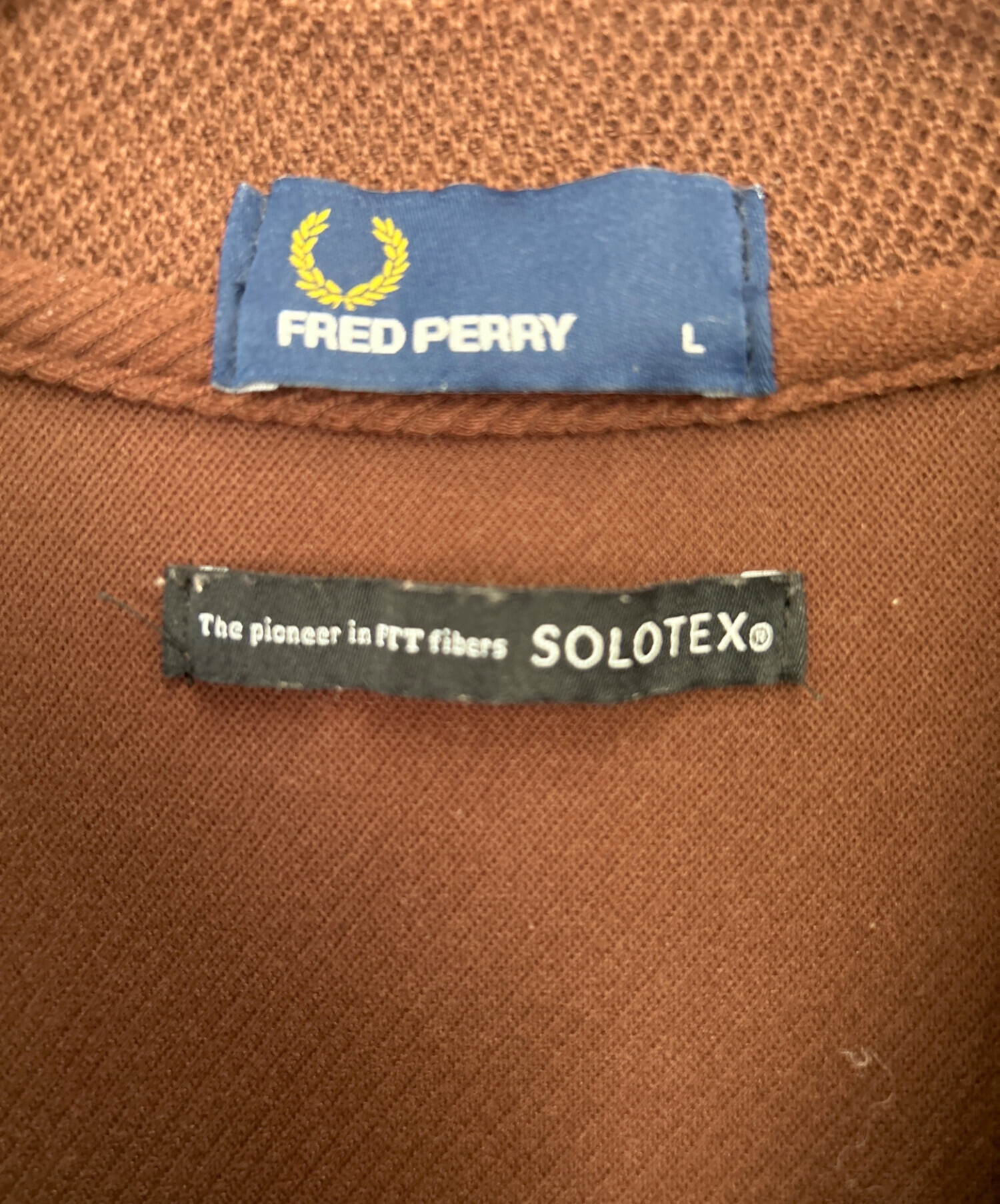 • FRED PERRY(フレッドペリー)FRED PERRY (フレッドペリー) EDIFICE (エディフィス) ポロシャツ ブラウン サイズ:Lの古着・服飾アイテム 各所に毛玉、毛羽立ち有