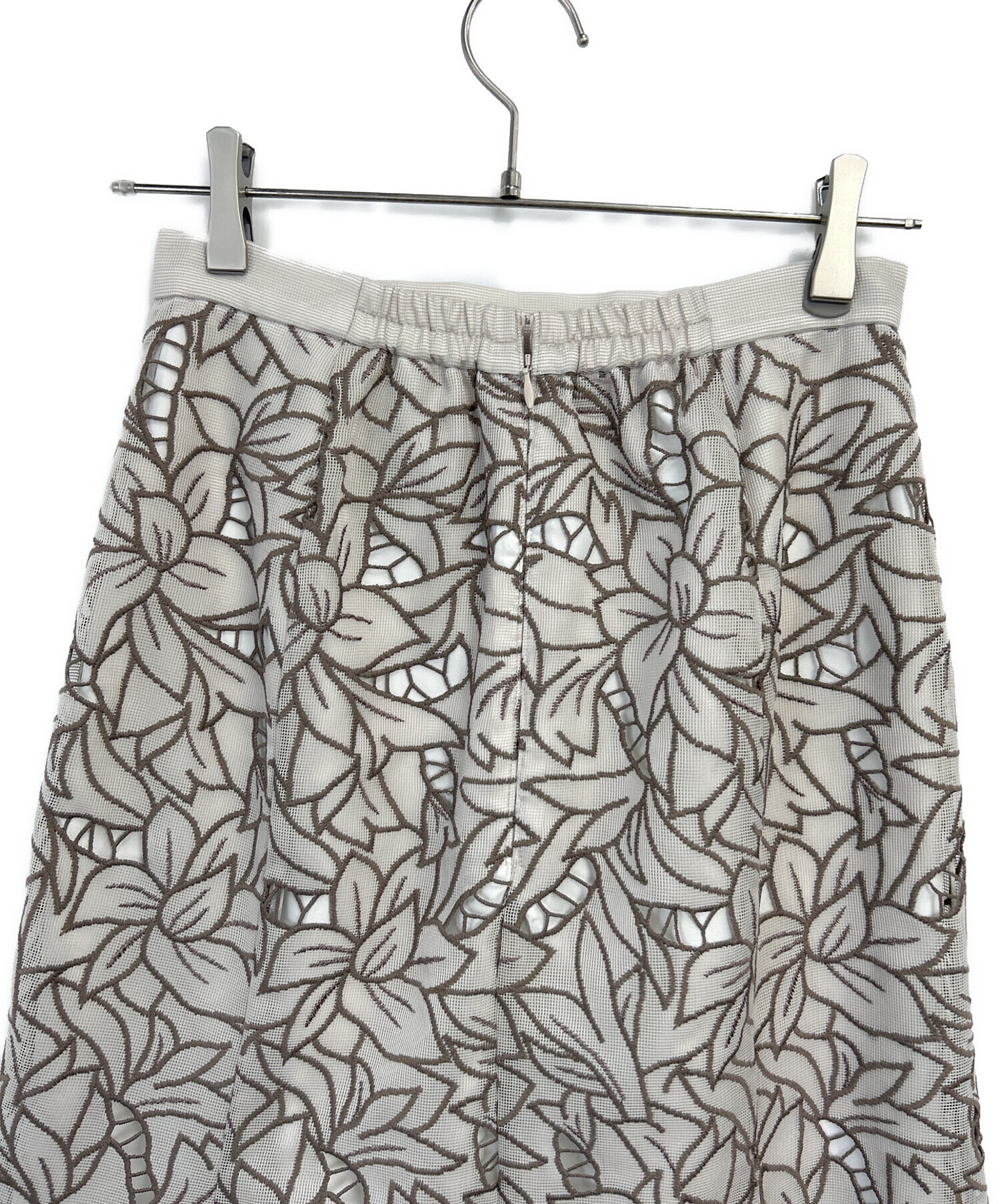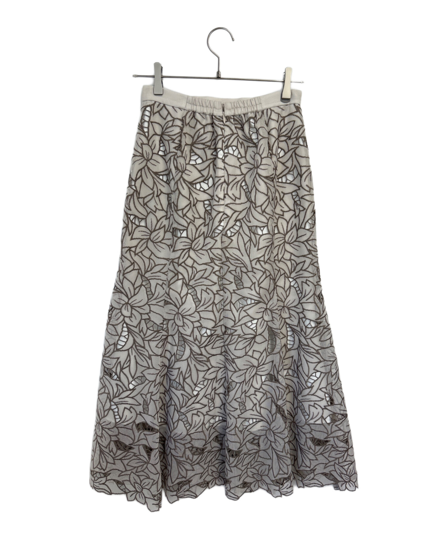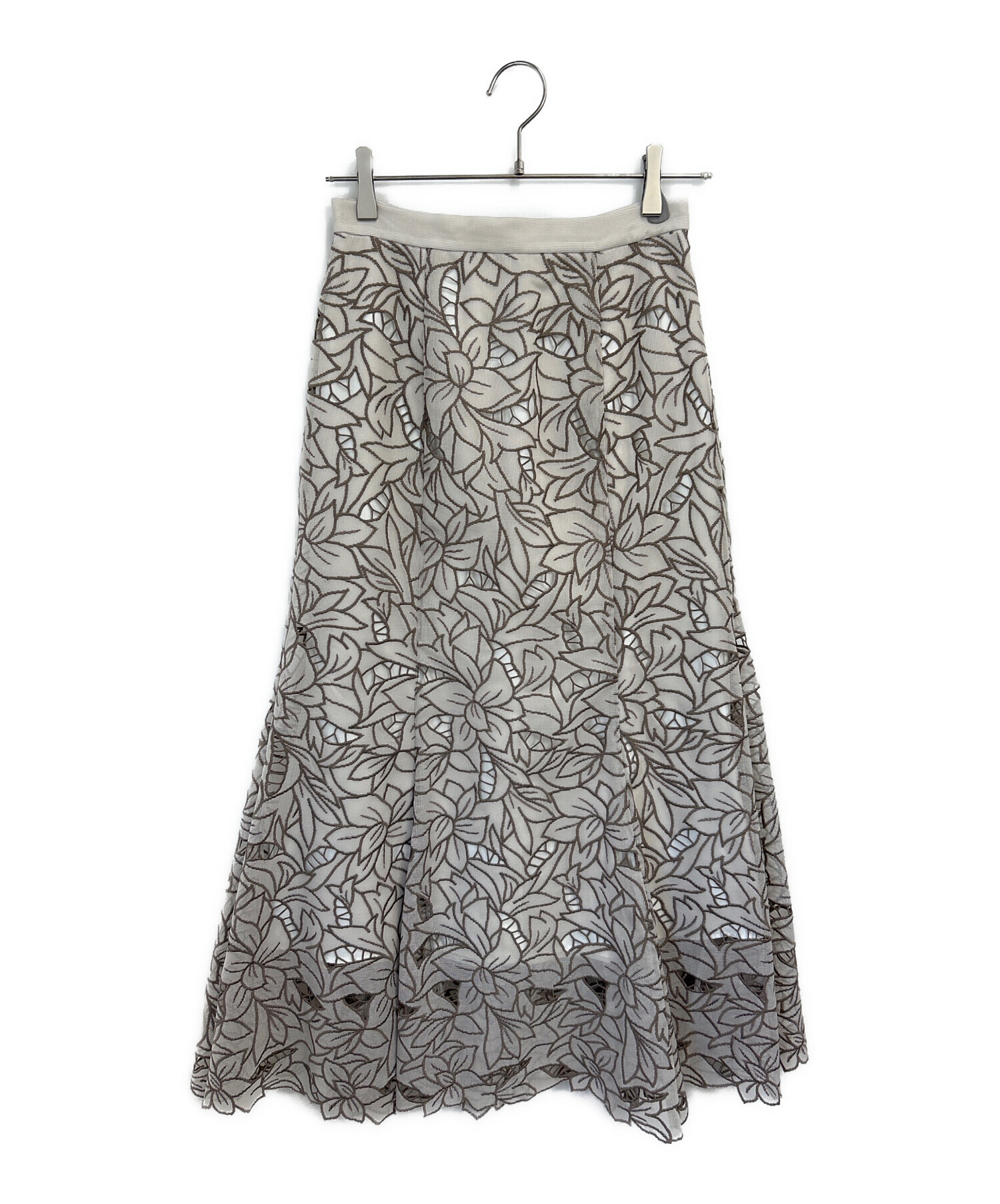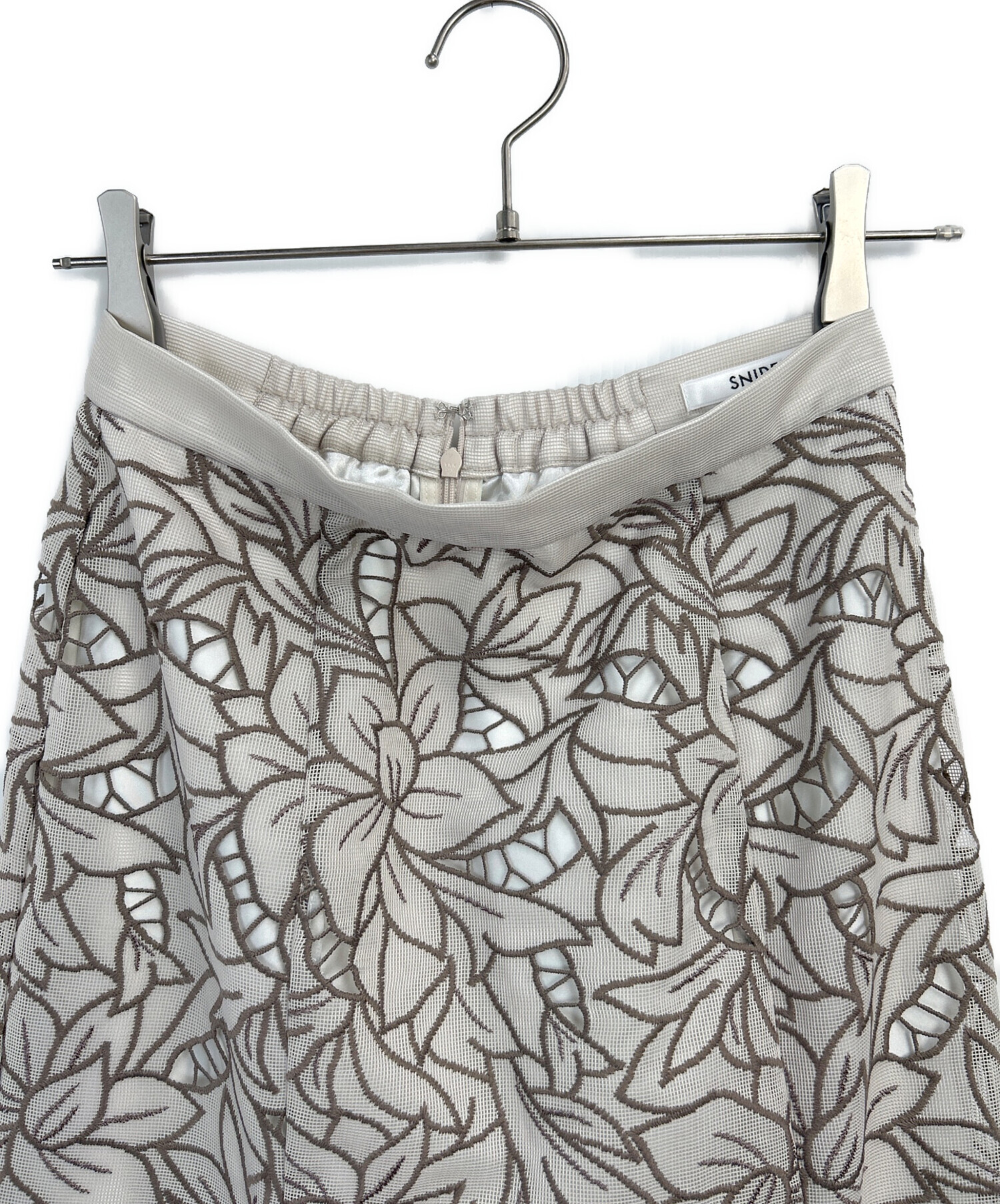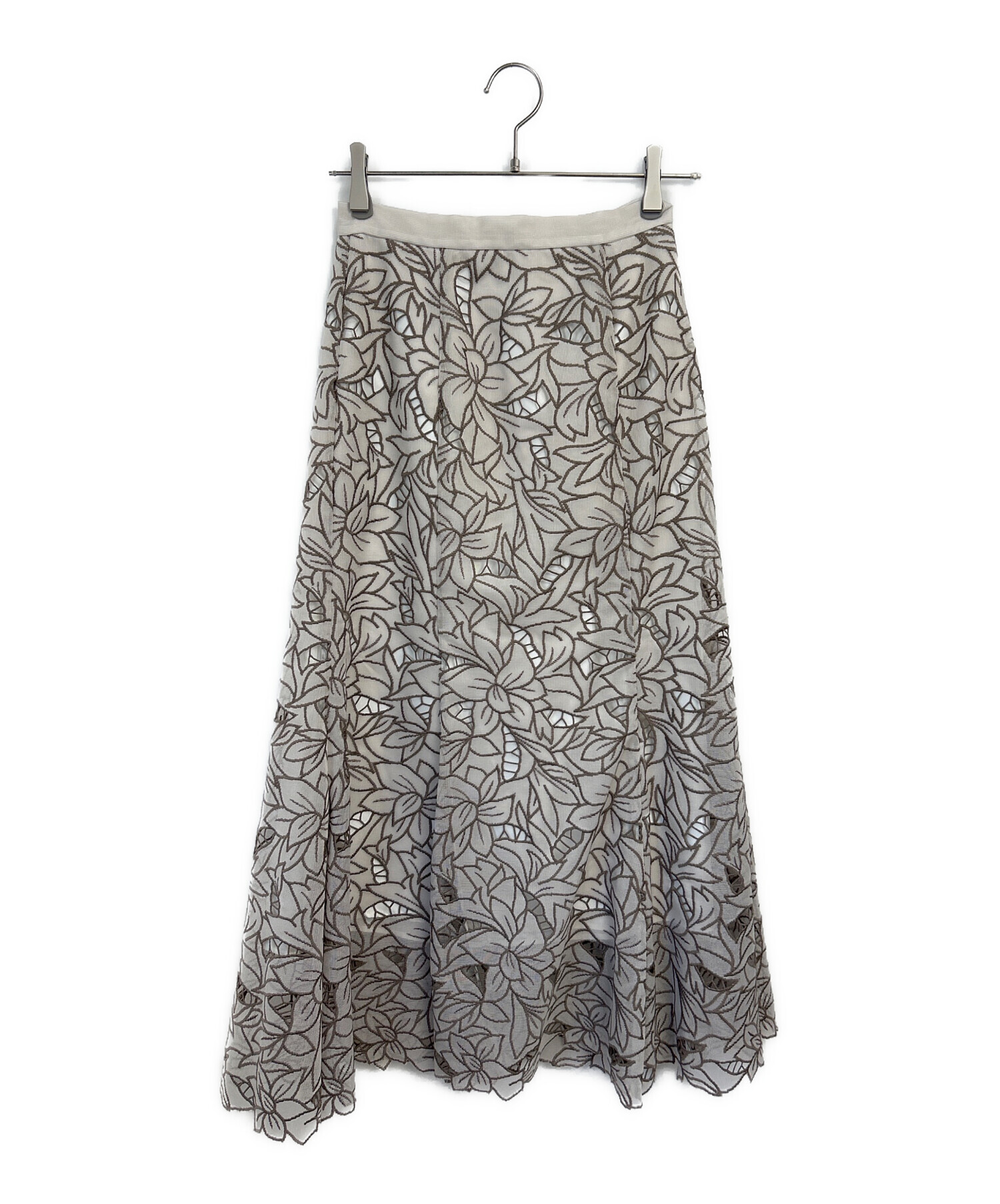 • Snidel(スナイデル)Snidel (スナイデル) カットワークセミフレアスカート グレー×ブラウン サイズ:1の古着・服飾アイテム 裏地有