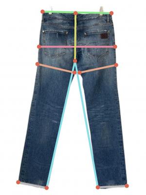 当サイトでは商品の表記サイズの他に、出品商品を採寸しサイズを記載しております。また、実際のアイテム画像を使用した計測とイラストを使用した計測の2パターンがございます。