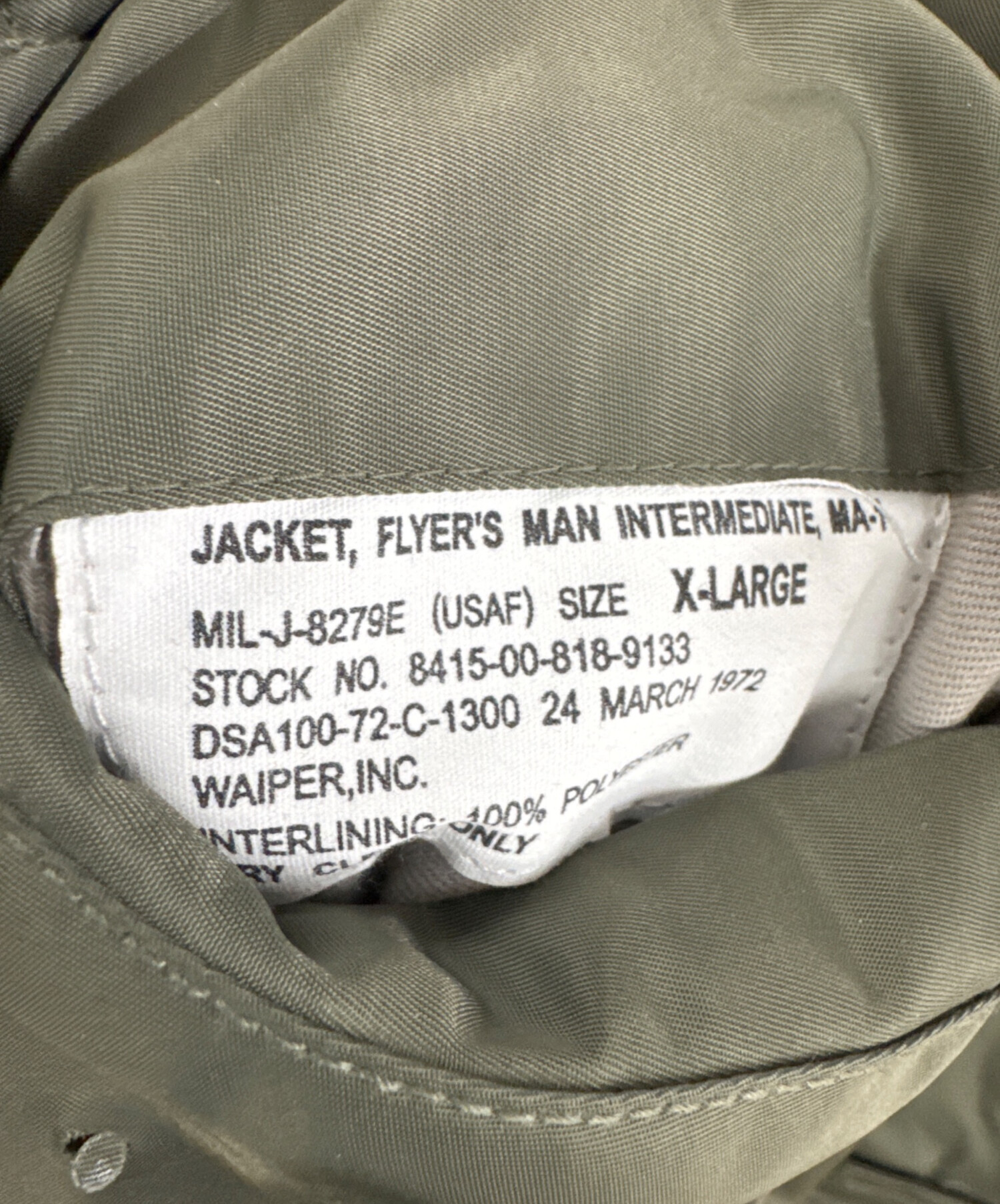 • waiper(ワイパー)waiper (ワイパー) MA-1フライトジャケット カーキ サイズ:XLの古着・服飾アイテム ※ボタンオスホック欠損有