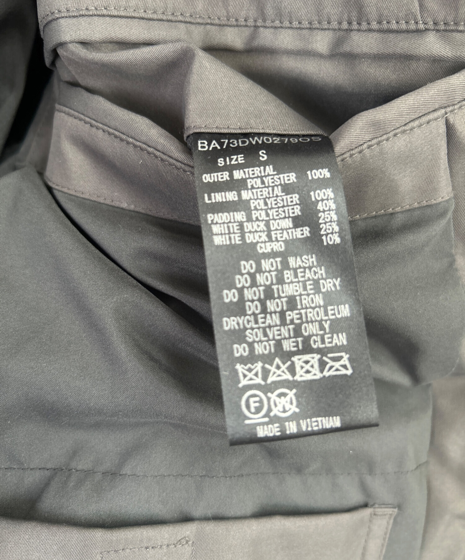 | 素材 | 表地 ポリエステル100% 裏地 ポリエステル100% 中綿 ポリエステル40% ダウン25% フェザー25% キュプラ10% |
