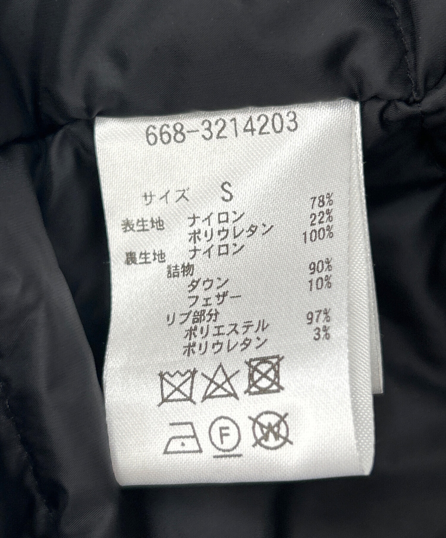 | 素材 | 表生地 ナイロン78% ポリウレタン22% 裏生地 ナイロン100% 詰物 ダウン90% フェザー10% リブ部分 ポリエステル97% ポリウレタン3% |