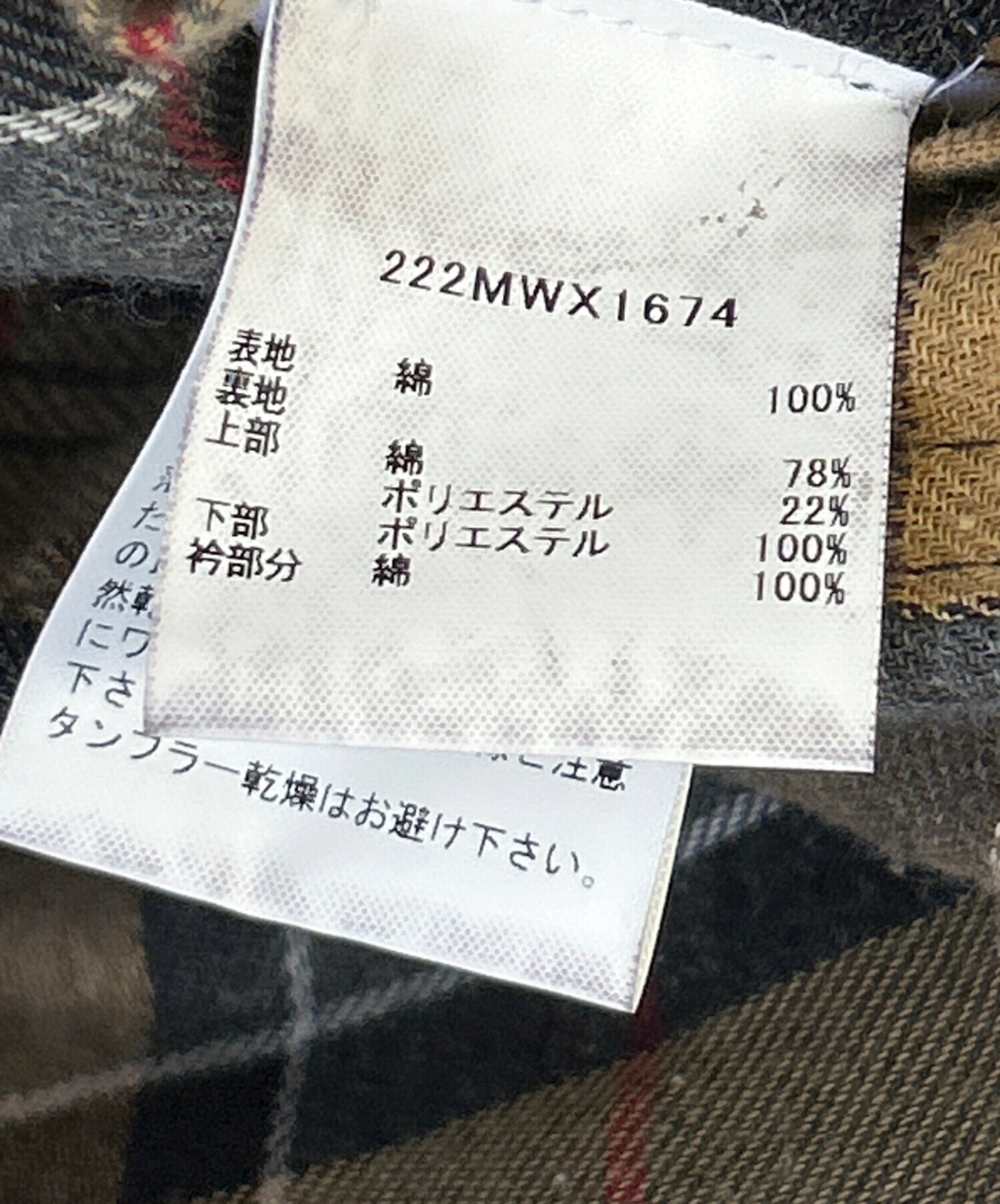 | 素材 | 表地 綿100% 裏地 上部 綿78% ポリエステル 22% 下部 ポリエステル100% 襟部分 綿100% |