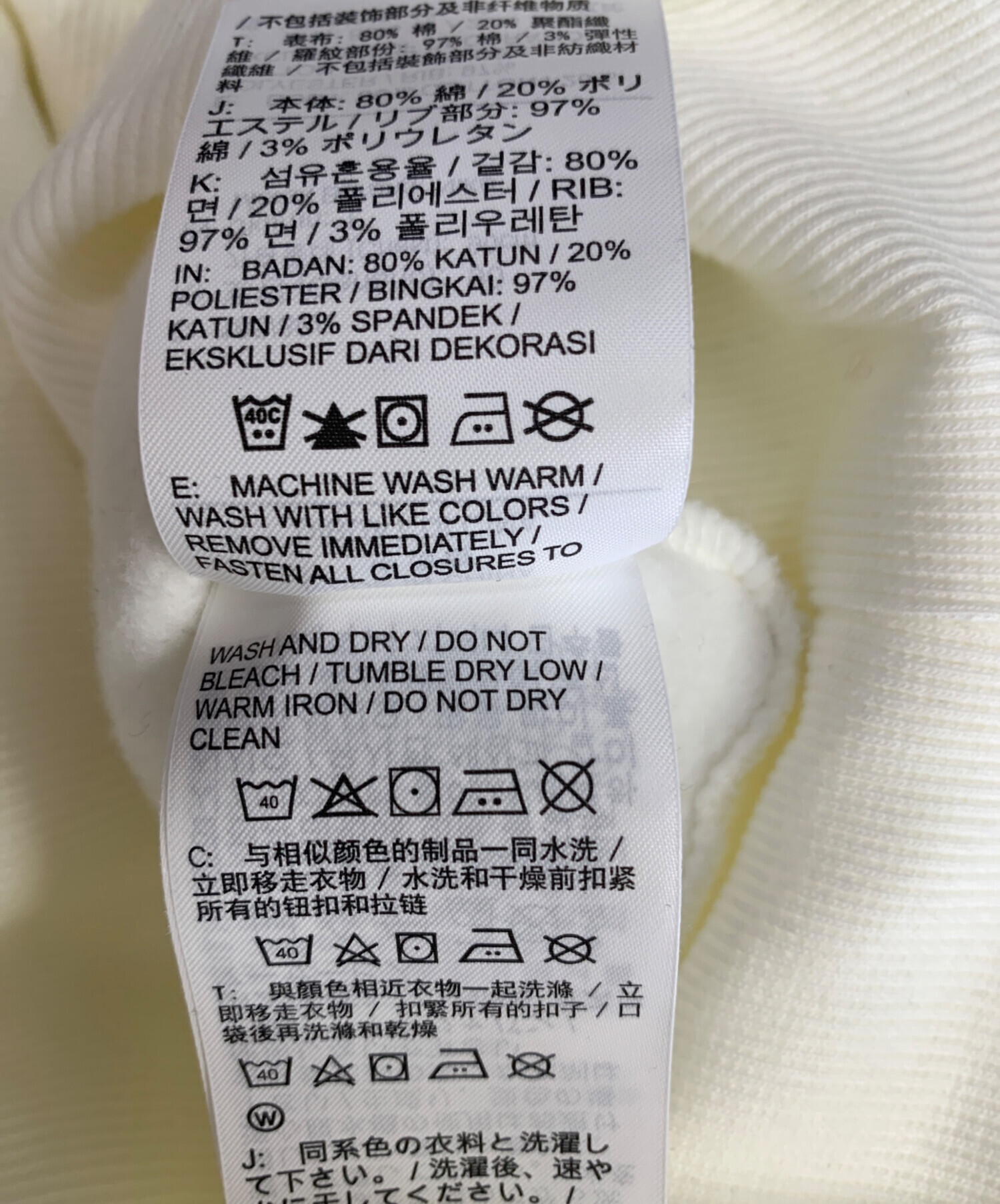 | 素材 | 本体:80%綿 20%ポリエステル リブ部分:97%綿 3%ポリウレタン |