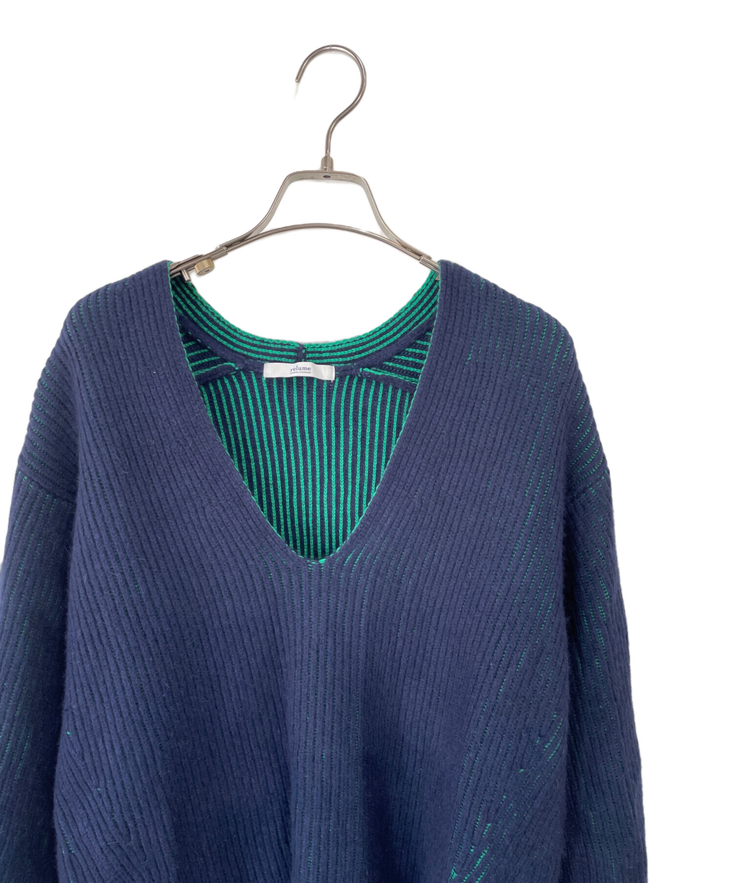 • JOURNAL STANDARD relume(ジャーナルスタンダード レリューム)JOURNAL STANDARD relume (ジャーナルスタンダード レリューム) 厚手ニット ネイビー×グリーン サイズ:Fの古着・服飾アイテム 毛玉・毛羽立ち有