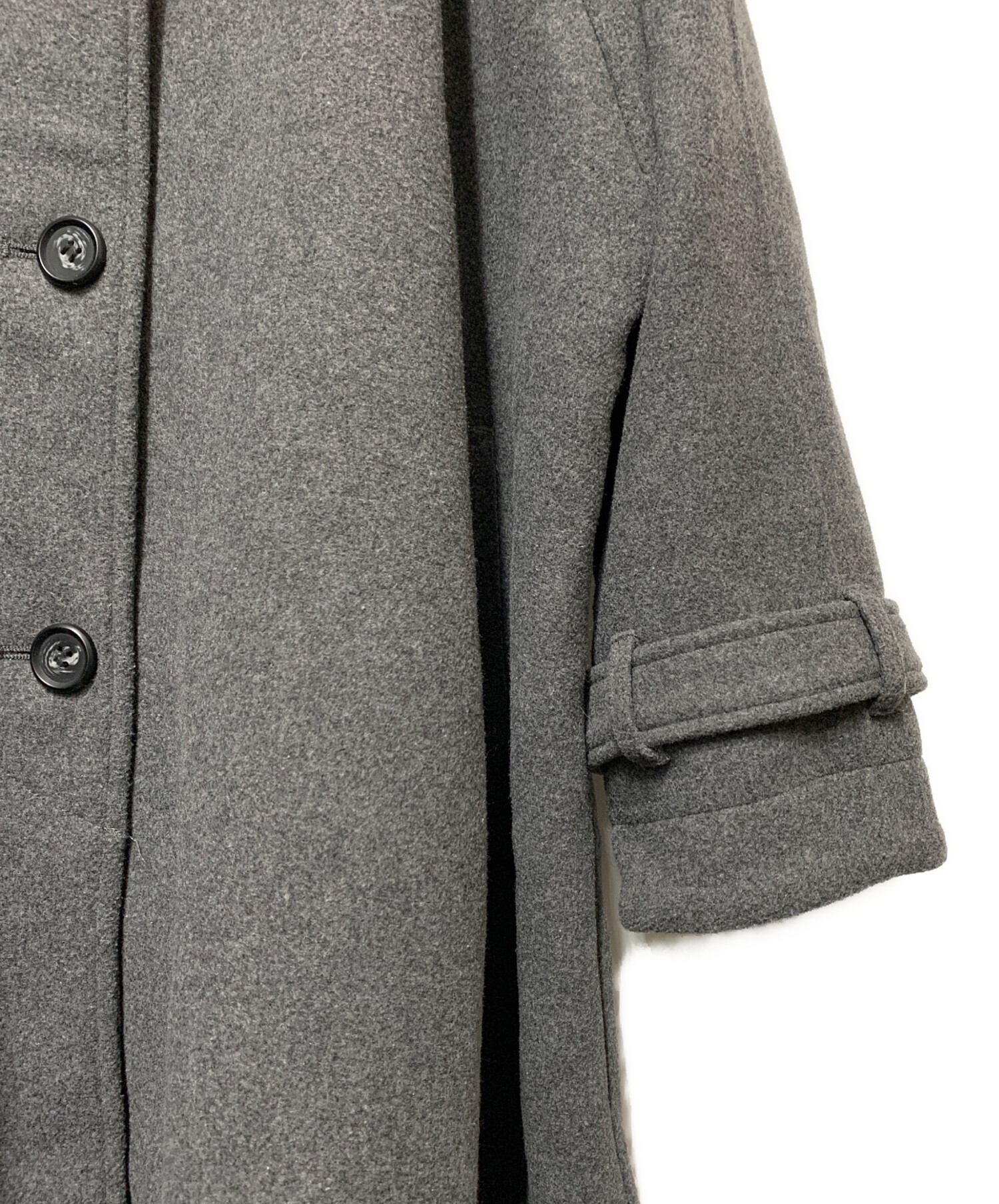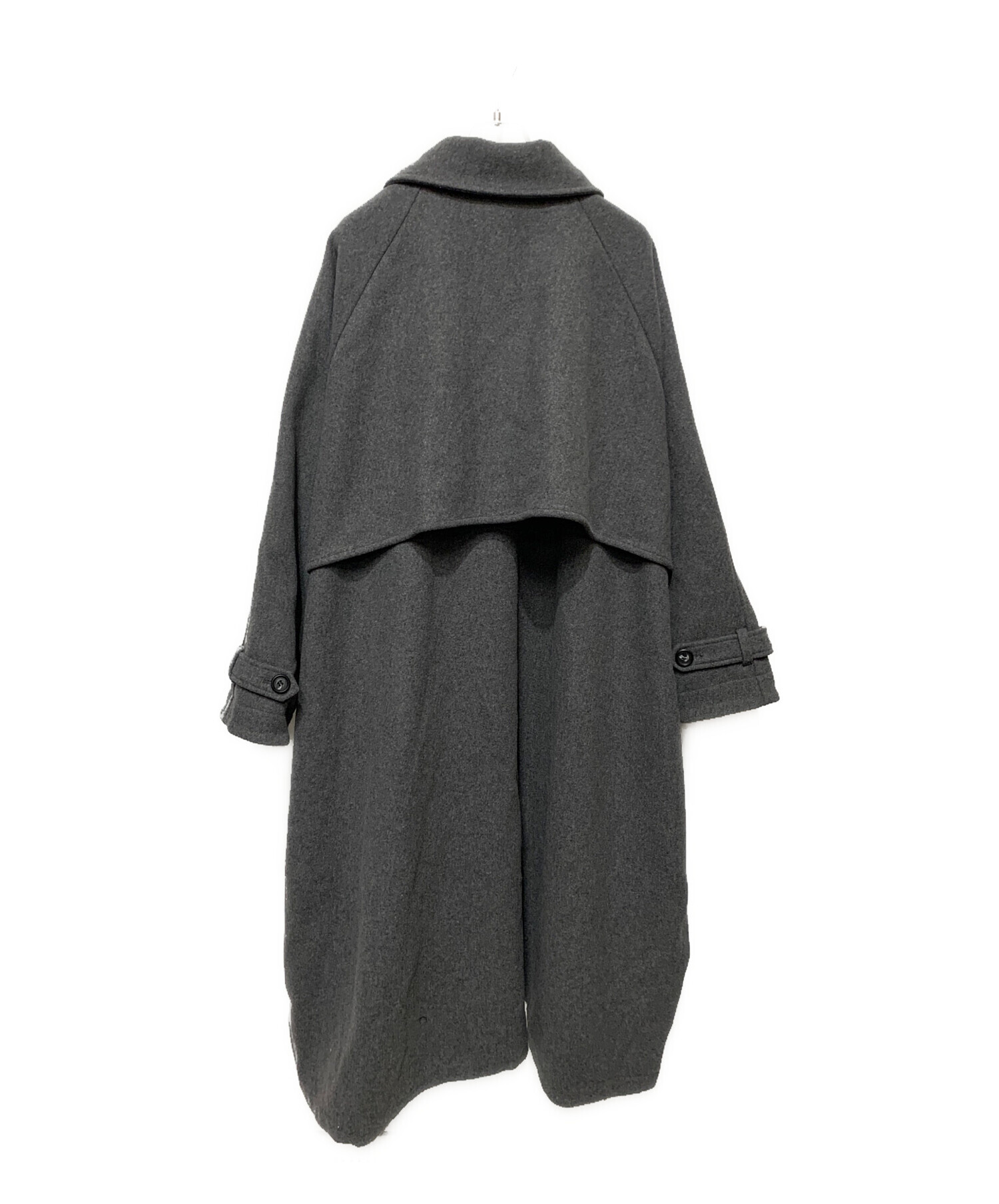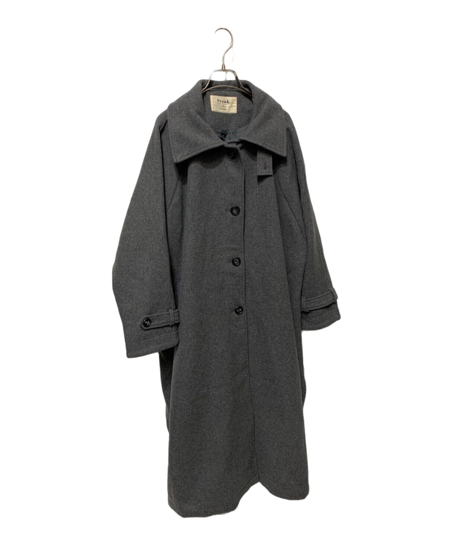 • Pronk(プロンク)Pronk (プロンク) RODEO CROWNS WIDE BOWL (ロデオクラウンズワイドボウル) ウールロングコート グレー サイズ:FREEの古着・服飾アイテム ボタンホールホツレあり(裏側)