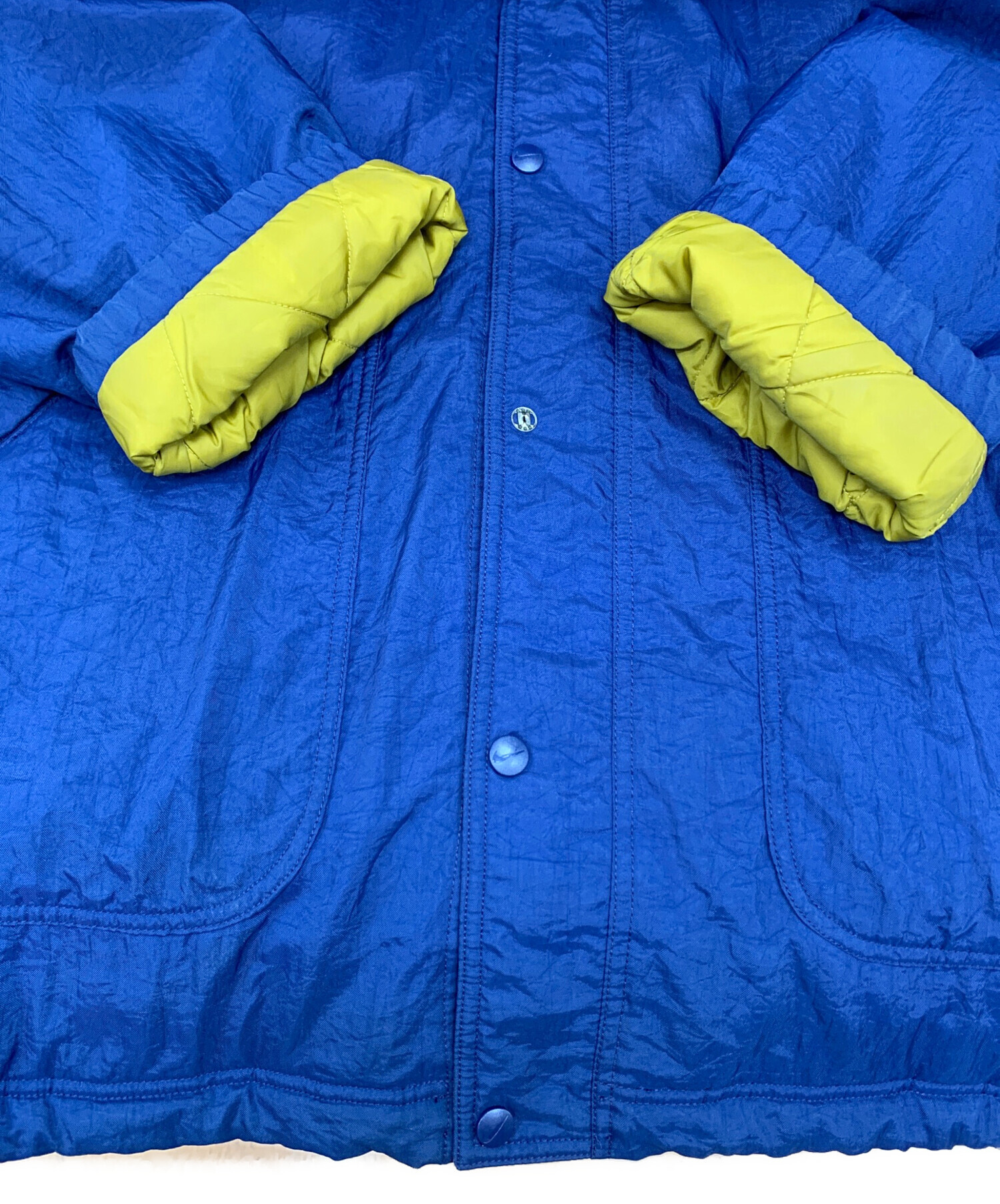 • NIKE(ナイキ)NIKE (ナイキ) ナイロンジャケット ネイビー×ブラウン サイズ:Lの古着・服飾アイテム 袖口裏ヨゴレ・釦トップ欠品あり