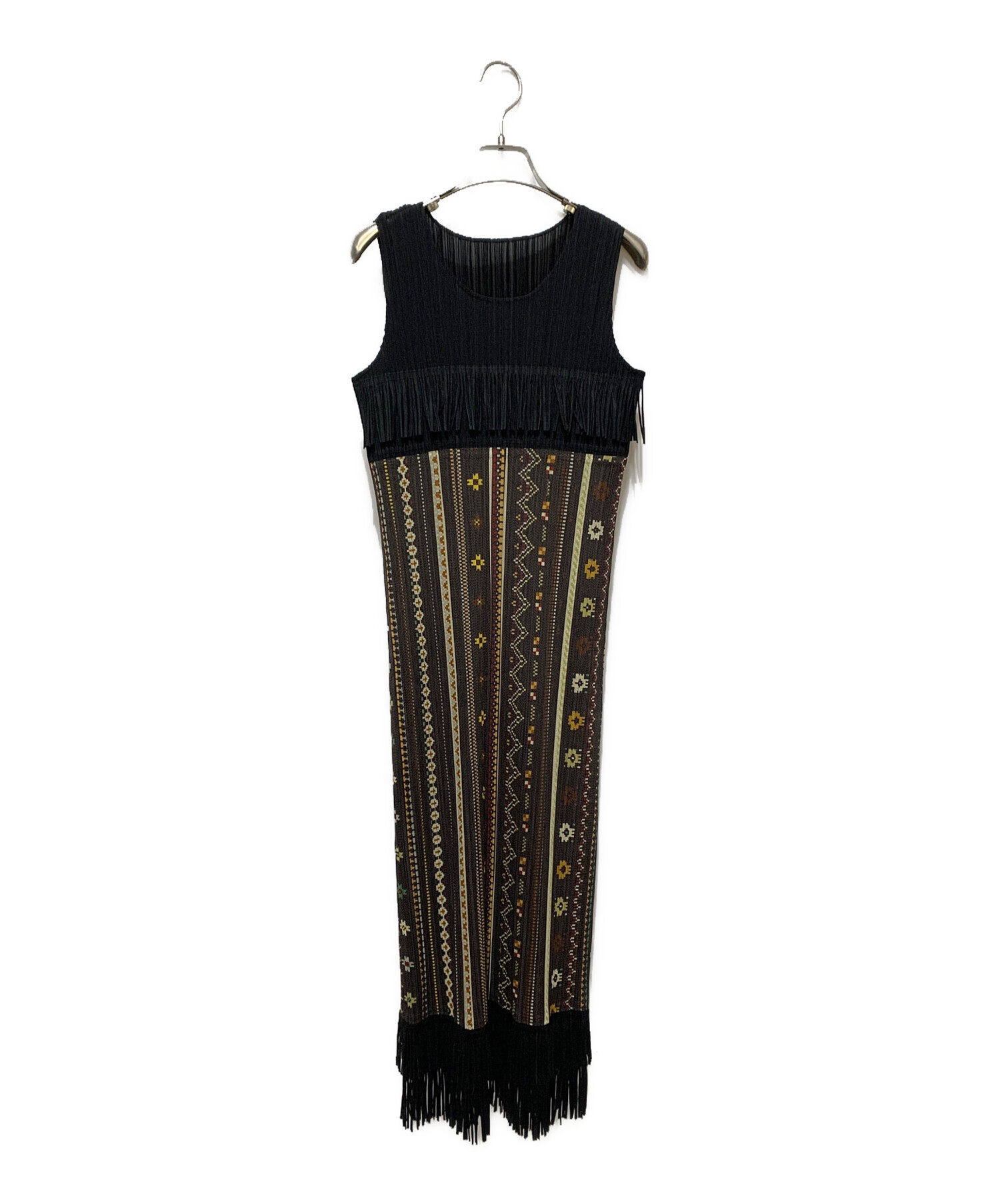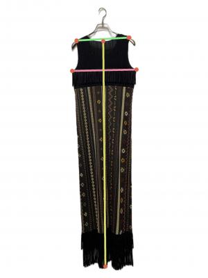 フリンジノースリーブプリーツワンピース