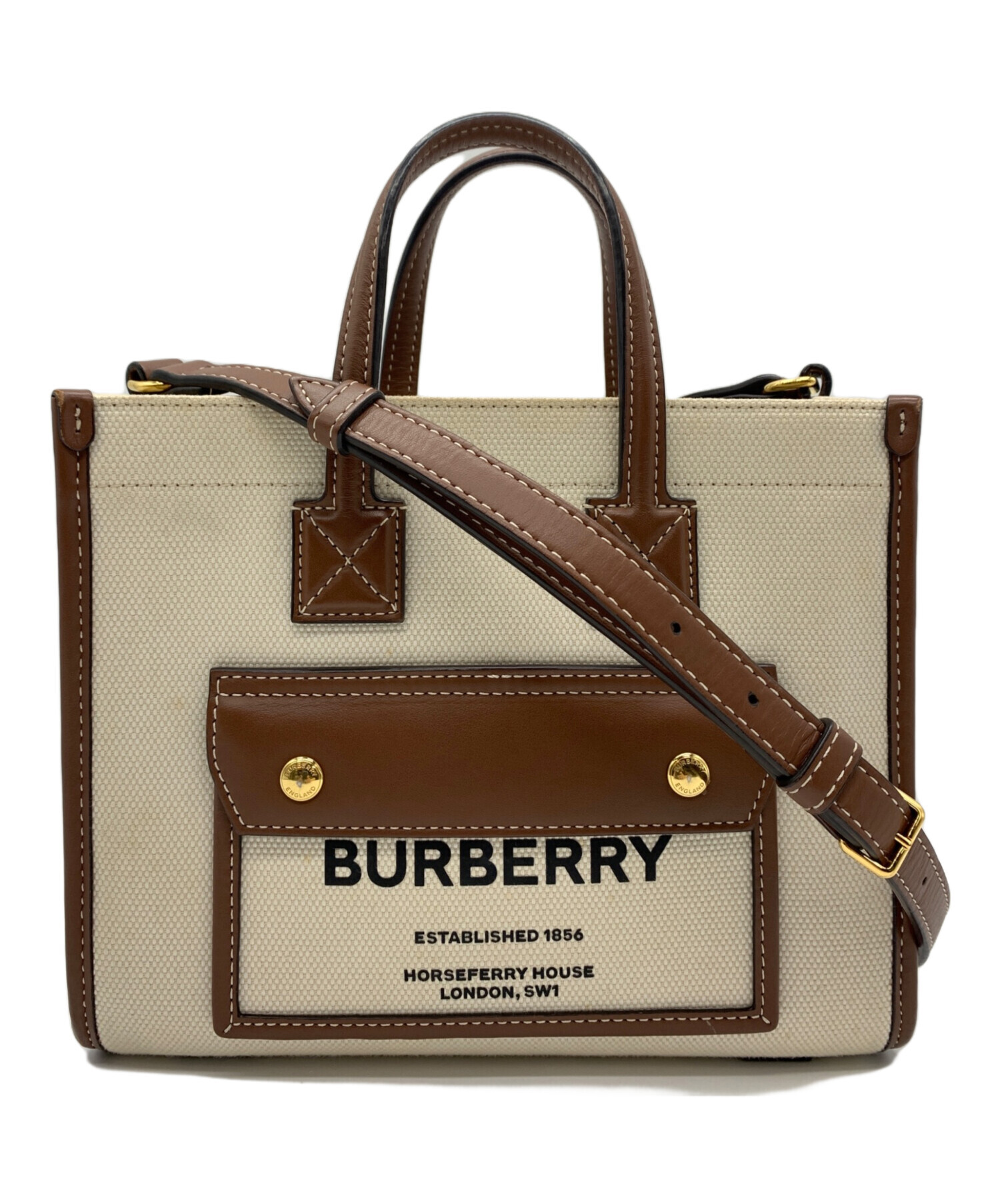 • BURBERRY(バーバリー)BURBERRY (バーバリー) 2WAYバッグ ベージュ×ブラウンの古着・服飾アイテム 釦スレ・ヨゴレあり