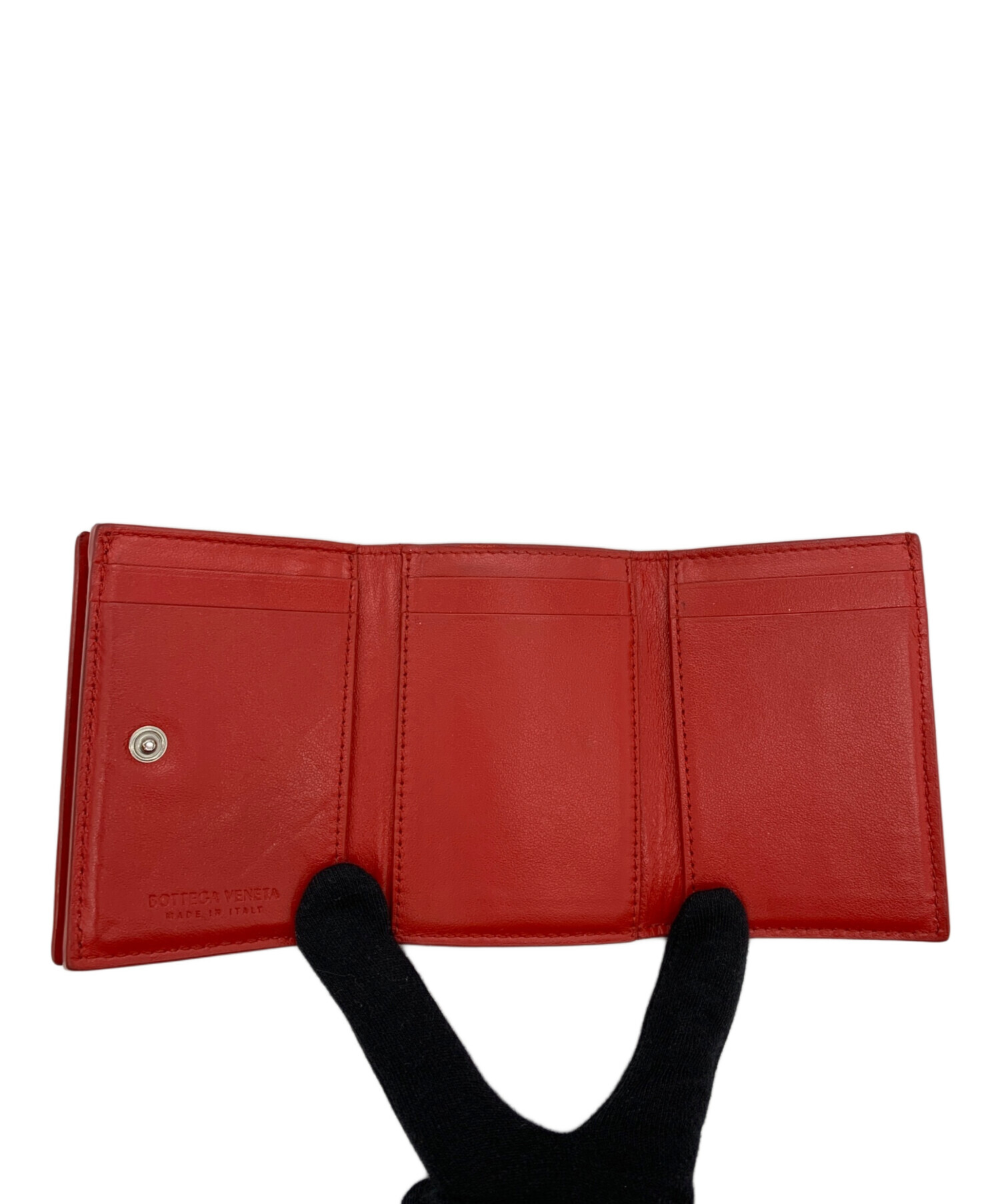 • BOTTEGA VENETA(ボッテガベネタ)BOTTEGA VENETA (ボッテガベネタ) イントレチャート コンパクトウォレット レッドの古着・服飾アイテム 内部ヨゴレあり