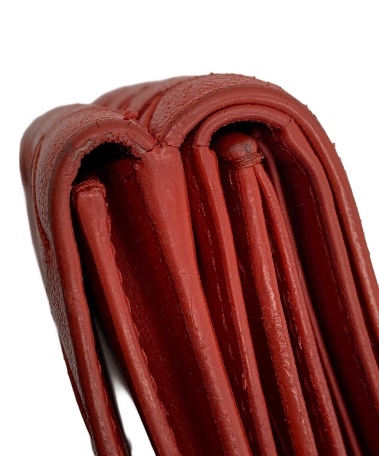 • BOTTEGA VENETA(ボッテガベネタ)BOTTEGA VENETA (ボッテガベネタ) イントレチャート コンパクトウォレット レッドの古着・服飾アイテム コバダメージあり