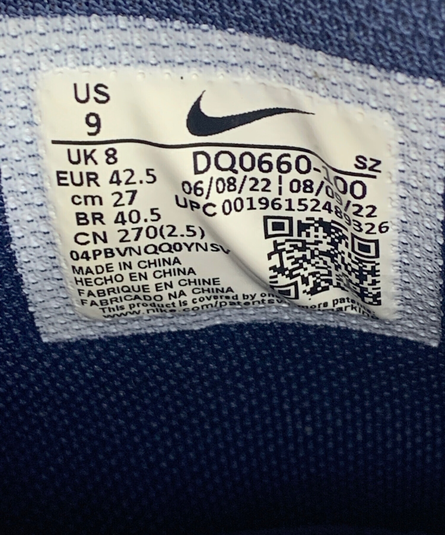 タグ表記サイズ:27( 参考サイズ:27cm )