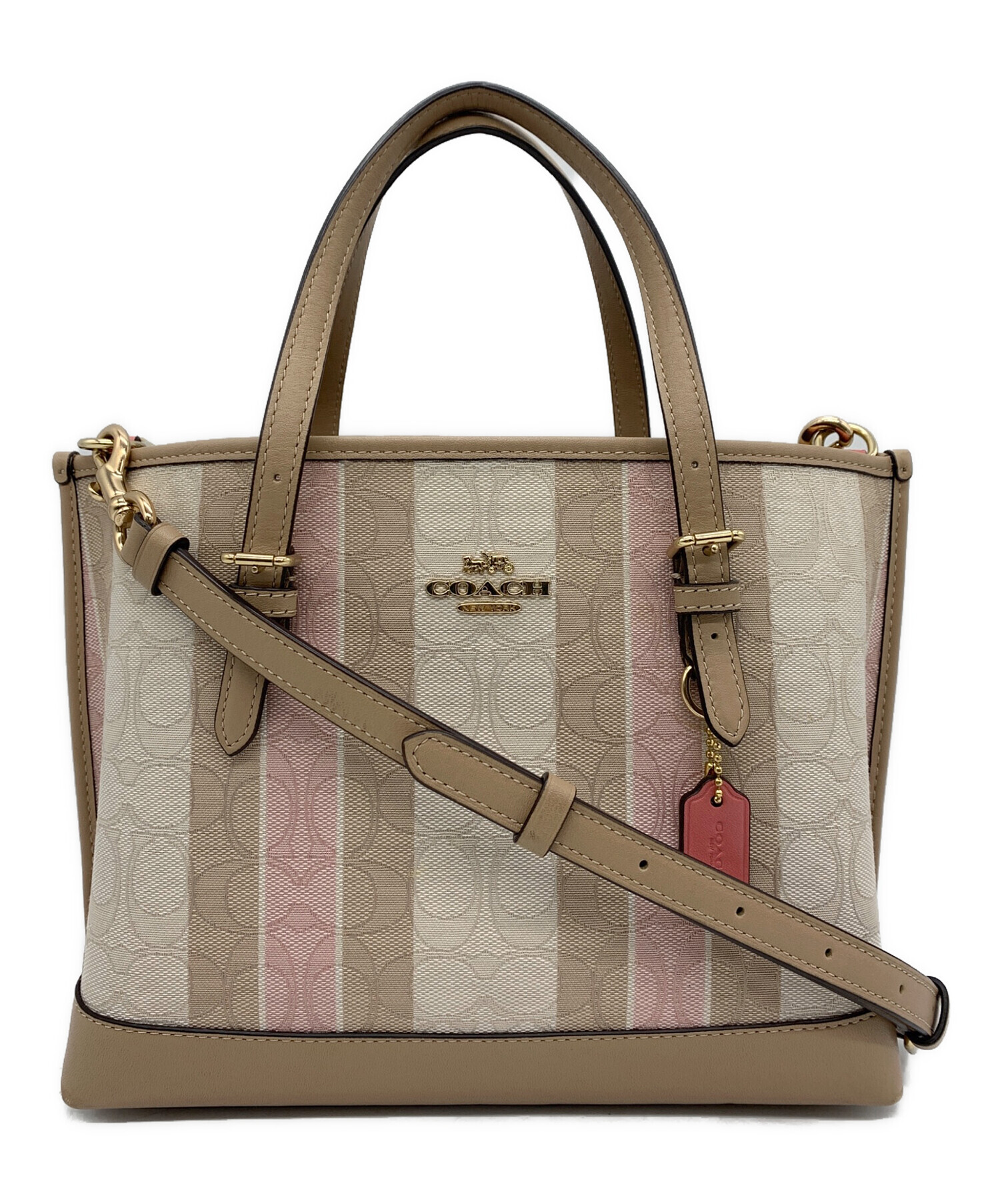 • COACH(コーチ)COACH (コーチ) モリー トート 25 ジャガードウィズストライプ ピンクベージュの古着・服飾アイテム ダメージあり